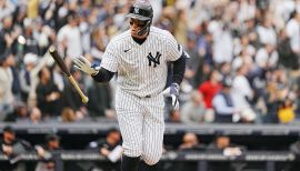Batted .267/.406/.613 (98-for-367) with 79R, 16 doubles, 37HR, 75RBI, 88BB and 3SB in 106 games with the Yankees…appeared defensively in RF (54G/50GS) and CF (18G/16GS)…posted a .992 fielding percentage (1E/133TC) in the outfield…was named a finalist for the Silver Slugger and Hank Aaron Award…was named to the All-MLB Second Team...Was named the 2023 Roberto Clemente Award winner…the Roberto Clemente Award is the annual recognition of a Major League player who best represents the game of baseball through extraordinary character, community involvement, philanthropy and positive contributions, both on and off the field…was the fourth Yankee to earn the honor, joining Derek Jeter (2009), Don Baylor (1985) and Ron Guidry (1984)...Despite missing 51 games on the injured list, his 37HR were the fourth-most in the AL and tied for the 10th-most in the Majors…was also tied for fourth in the AL in game-winning RBI (13) and ranked sixth in walks (88)...Was just the second player in Major League history to hit at least 37HR in a season while playing in 106 games-or-fewer, joining Mark McGwire (39HR in 104G in 1995 with Oakland)...Reached base safely in 88 of his 106 games, including 65 of his final 77 games (5/12-9/30)…reached base multiple times in 56 of his 106 games...After returning from the IL on 7/28, was tied for the AL lead and tied for fourth in the Majors with 18HR over that span (7/28-10/1)…also led the AL and ranked second in the Majors with 53BB…ranked fourth in the AL in OBP (.408) and fifth in SLG (.557) and OPS (.965) over that span...Hit .282/.413/.624 (24-for-85) with 21R, two doubles, 9HR, 11RBI and 19BB in the first inning…his 9HR in the first inning were the second-most in the AL and the eighth-most in the Majors…among batters with at least 50PA, he also ranked seventh in the Majors in OPS (1.037, second in AL), eighth in SLG (second in AL) and tied for ninth in walks (tied for second in AL)...18 of his 37HR either tied the game (two) or gave the Yankees the lead (16)…the Yankees went 24-4 in games he homered in…hit 15HR in 37 games vs. the AL East...His seven multi-HR games were the most in the AL and the second-most in the Majors, trailing only Atlanta’s Matt Olson (eight)...Homered in consecutive games six times: 3G from 5/28-30 and 2G from 5/15-16, 5/18-19, 8/18-19, 8/23-24 and 9/1-2...Hit 3HR in a game twice: 8/23 vs. Washington and 9/22 vs. Arizona…is one of just 25 players (35 times) in franchise history to hit at least 3HR in a regular season game…became the sixth player in franchise history to record multiple 3HR games, joining Lou Gehrig (four), Joe DiMaggio (three), Alex Rodriguez (three), Tony Lazzeri (two) and Bobby Murcer (two)…became the first player in franchise history to record multiple 3HR games in a single season...Hit his first career Opening Day home run with a solo HR in the first inning on 3/30 vs. San Francisco...Reached base in each of his first 12 games from 3/30-4/12…was part of a career-high 45-game on-base streak from 8/29/22-4/12/23…batted .366/.505/.758 (56-for-153) with 42R, nine doubles, 17HR, 29RBI, 44BB, 1HP and 4SB in that span…was the longest on-base streak by a Yankee in the last 19 seasons (since 2005) and was the third-longest on-base streak by a Yankee in the last 82 years (since 1942), trailing only Derek Jeter (57G from 1998-99) and Alex Rodriguez (53G in 2004)…was just the eighth Yankee (13th time) in franchise history to record an on-base streak of at least 45 games, joining Joe DiMaggio (twice: 74G in 1941 and 52G in 1937), Derek Jeter (57G from 1998-99), Alex Rodriguez (53G in 2004), Lou Gehrig (four times: 52G in 1934, 49G from 1933-34, 49G in 1935 and 47G in 1932), Ben Chapman (51G in 1933), Babe Ruth (twice: 51G in 1923 and 46G in 1921) and Frankie Crosetti (46G in 1936)…was the second-longest on-base streak by any Major League player since 2019, trailing only St. Louis’ Paul Goldschmidt’s 46-game streak from 4/22-6/10/22…during his on-base streak, had reached base multiple times in 32 of those 45 games....Recorded his 500th career RBI on 4/1 vs. San Francisco with an RBI single in the ninth inning...From 4/8-8/12, hit .391/.521/.935 (36-for-92) with 26R, eight doubles, 14HR, 26RBI and 26BB in 27 road games...Recorded his first multi-HR game of the season and the 28th multi-HR game of his career on 4/9 at Baltimore… with his 223rd and 224th career home runs, surpassed Don Mattingly (222HR) for the 11th-most home runs in Yankees history...Was removed from the game in the fourth inning on 4/27 at Texas due to right hip discomfort…was placed on the 10-day I.L. on 5/1 (retroactive to 4/29) with a right hip strain…missed nine team games…was reinstated on 5/9...Was named the AL “Player of the Month” in May after batting .342/.474/.882 (26-for-76) with 23R, five doubles, 12HR, 25RBI, 20BB/3IBB, 1SB and 1SF in 21 games…led the Majors in May in SLG and OPS (1.356) and was tied for the Major League lead in HR (first in AL)…also ranked second in the Majors in OBP (first in AL), tied for second in RBI (tied for first in AL) and extra-base hits (17, tied for first in AL), tied for fifth in walks (tied for second in AL) and tied for sixth in runs scored (tied for first in AL)…also ranked sixth in the AL in BA…his 12HR during May matched his third-most in a single calendar month, trailing only his 15HR in September 2017 and 13HR in July 2022 (also hit 12HR in May 2022)…his .882 SLG was the fourth-highest by a Yankee (min. 75 PA) in the last 86 years (since 1938), trailing only Jason Giambi’s .974 SLG in July 2005, his own .889 SLG in September 2017 and Alex Rodriguez's higher .882 SLG in April 2007…marked his sixth career AL “Player of the Month” honor (first since September 2022), matching Alex Rodriguez for the most by a Yankee in franchise history (since 1974 when the award was established)...Posted a 1.917 OPS in nine road games in May…according to OptaSTAT