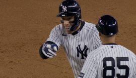 In 112 games with the Yankees (88 starts in RF, 19 at DH, 1 in CF), hit .278 (115-for-413) with 77R, 22 doubles, 27HR, 67RBI, 76BB and 6SB…the Yankees went 21-6 when he homered in 2018...Was a finalist for the AL Gold Glove Award in RF...Hit .352/.471/.699 (69-for-196) with 47R, 14 doubles, 18HR, 45RBI and 20 multi-hit games in 56 contests at Yankee Stadium…did not go consecutive home games without a hit over a 59-game stretch at Yankee Stadium (9/17/17-7/26/18)…hit safely in 17 consecutive home games from 9/17/17-4/16/18…had at least 1RBI in a franchise-record 14 straight home games from 9/18/17-4/7/18…was tied for the fourth-longest such streak in the Majors since RBI became an official statistic in 1920...Appeared in each of the Yankees' first 56 games of the season (3/29-6/4 G2)...Hit 25HR before the All-Star break, becoming the fourth player to hit at least 25HR before the break in two different seasons as a Yankee and just the second to do so in consecutive years, joining Roger Maris (1960-61), Mickey Mantle (1956 and '61) and Jason Giambi (2003 and '06)...Had a career-long 14-game hitting streak from 9/17/17-3/29/18…had an eight-game streak of drawing at least one walk from 9/24/17-3/29/18, matching the longest streak of his career...Made his first Major League start (and appearance) in CF in 3/31 loss at Toronto...Reached base safely in 23 of his 25 games in April (all except 4/27 and 4/29 at Los Angeles-AL), including each of his first 21 games of the month...Was 3-for-3 with an HR off Red Sox starter Chris Sale on 4/10…entered 0-for-12 with 10K in his career vs. Sale…became the first player to record 3H off Sale in one game since he joined the Red Sox before the 2017 season…prior to Judge, the last player with a three-hit game vs. Sale was Detroit's Miguel Cabrera, who went 4-for-4 with two solo HRs against Sale on 9/5/16 at Chicago-AL...Celebrated his 26th birthday on 4/26…his 63 career homers prior to turning 26 rank 13th in franchise history and are fifth-most in the last 50 years (Mattingly-94, Murcer-77, Jeter-70, Sánchez-71)...Had at least 1RBI in seven straight games from 5/6-13 (14RBI), tying the longest RBI streak of his career (also 7G: 9/24-30/17)...Hit game-winning two-run HR in the 13th on 6/6 at Toronto…was his first career extra-inning HR and was the latest Yankees HR to break a 0-0 tie since Alex Rodriguez's 15th-inning two-run "walk-off" HR on 8/7/09 vs. Boston...Hit game-winning solo HR in the eighth inning on 6/9 at the Mets…was the third straight game the Yankees hit a go-ahead HR in the eighth-inning-or-later, their first time doing so since 8/29-31/77 (three straight - Chambliss, Rivers and Nettles)…Judge hit two of those homers after having just one go-ahead HR in the eighth-inning or-later over his first 239 career games...Started in LF and went 1-for-2 with 1R, 1HR, 1RBI and 1BB in the AL's All-Star Game win on 7/17…his solo HR off Scherzer to lead off the second inning was the first of 10HR hit in the game and the first All-Star homer by a Yankee since Jason Giambi in 2003…became the third Yankee to homer in an All-Star Game at age 26-or-younger, joining Joe DiMaggio (1936) and Mickey Mantle (1955 and '56)…was selected by fans to his second straight AllStar team…is one of five position players drafted by the Yankees to make the All-Star team multiple times as a Yankee (also Thurman Munson, Don Mattingly, Derek Jeter and Jorge Posada)…received a fan-elected starting assignment for the second straight year and is the first Yankee to start at least two straight ASGs since Robinson Canó (2010-13) and first Yankees OF to start two straight since Curtis Granderson (2011-12)...Was 1-for-1 with 1R in 7/26 win vs. Kansas City before being removed from the game in the fourth for PH (Andújar) after being hit by a pitch in the first inning…underwent an MRI at NewYork-Presbyterian Hospital and was diagnosed with a chip fracture of the right wrist (ulnar styloid bone)…was placed on the 10-day disabled list with the injury from 7/27-9/14 (missed 45 team games)…in a simulated game at Yankee Stadium on 9/17, had 11 live at-bats off of RHP A.J. Cole, RHP Chance Adams and minor-league LHP Phillip Diehl...Hit the Yankees' 264th home run of the season with a solo HR in the eighth inning of 9/28 win at Boston, tying the single-season Major League record (1997 Seattle Mariners)…was his first HR since 7/21 vs. the Mets, snapping a 15-game homerless stretch (49AB) and 11-game stretch without a homer since returning from the D.L...Hit .421/.500/.947 (8-for-19) with 6R, 1 double, 3HR, 4RBI and 3BB in five postseason games…homered in each of the first 3G, joining Hank Bauer (1958 World Series Games 1-3) as the only Yankees to homer in each of the team's first three postseason games in a year (note: Johnny Mize homered in 1952 World Series Games 3-5 after missing the first 2G of the Series)…became the third player to begin a postseason with 3G with at least 2H and 1HR, joining St. Louis' Matt Carpenter in 2014 and the Yankees' Hank Bauer in 1958...Hit a two-run HR in the first inning of the Wild Card Game…with an exit velocity of 116.1 mph, was briefly the hardest-hit postseason HR of the Statcast era (since 2015), until Stanton's HR surpassed it later in the game...Set a postseason career high in hits in ALDS Game 1 at Boston, going 3-for-5 with a ninth-inning solo HR.