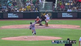 Shea Langeliers pops out to shortstop Nick Allen.