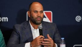 Played for Dominican Republic in inaugural 2006 World Baseball Classic...2006 winner of the Marvin Miller Man of the Year Award. Also nominated by his teammates in 2004 and 2005...Graduated in 1998 from Fort Osage High School in Independence, Missouri...Twice earned all-state honors in baseball...Earned a baseball scholarship to Maple Woods College in Kansas City, Missouri...At age 16, moved with his father from Dominican Republic to Kansas City...Became U.S. citizen Feb. 7, 2007, in a ceremony at the Thomas F. Eagleton U.S. Courthouse in St. Louis...After the 2011 World Series, was recognized with his own Wheaties cereal box cover...In a poll at ESPN’s website, voters selected “Winnie the Pujols” over “Phat Albert” as Chris Berman’s best nickname for Albert. Others include “The Machine” and “Prince Albert.”...Favorite sport after baseball is basketball...Grew up watching Michael Jordan and the Chicago Bulls...Originally signed by Cardinals scout Dave Karaff...He has five children: Isabella, Sophia, Ester, Alberto Jr. (A.J.), and Ezra...Resides in St. Louis, Missouri.