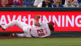 Among all NL players, ranked first in SF (10), fourth in singles (124), T-eighth in multi-hit games (46), ninth in AVG (.280) & hits (164) and 10th in AB (586) ...His 10 sacrifice flies were the most by a Phillie in a season since 2001, when Scott Rolen had 12...Tied Kyle Schwarber for the team lead in go-ahead RBI (21)...Posted a .352/.394/.541 slash line (.935 OPS) in 175 PA against LHP...Per Statcast data, his .290 xBA (expected batting average) ranked in the 98th percentile among qualifying MLB hitters...Made his second career Opening Day roster (also: 2021)...Batted leadoff for the first time in his career on 5/4 vs TEX...Slugged his first career game-tying HR in the ninth inning or later of a game on 6/7 at MIL (Josh Hader)...Recorded his first career multi-HR game on 7/8 at STL with a pair of solo homers against Adam Wainwright...Was on the restricted list, 7/12-13...Had a career-high 14-game hitting streak from 7/8-29, during which he posted a .471/.491/.647 slash line (1.138 OPS)...Led MLB with a .434 AVG in July (min. 50 PA); became the first Phillies player to hit over .430 in any calendar month (min. 50 PA) since Pat Burrell hit .435 in July 2007...On 8/21 vs NYM, logged his second career multi-HR game (other: 7/8 at STL) and collected a career-high six RBI...His 19 RBI in August were his most ever in a single calendar month (previous: 16 RBI in September 2020)...Hit .301 (100-332) in his final 84 games of the regular season (beginning 6/24); his .301 AVG in that span ranked 5th in the NL (min. 275 PA)...From 7/5-end of the regular season, slashed .321/.352/.487 (.839 OPS) in 88 PA with RISP...Made his first career postseason appearance in Game 1 of the NLWCS at ST...on 10/7 (started at 3rd base; 1-3, 2B, RBI, HBP)...Became just the second player in franchise history age 26 or younger to collect an XBH in his postseason debut, joining Greg Luzinski (25), who doubled in Game 1 of the NLCS on 10/9/76 vs CIN...Made his first career WS appearance in Game 1 on 10/28 at HOU (1-5, 2B, 2 RBI) and became the youngest Phillie (26 years, 86 days) ever with multiple RBI in a WS game...His HR in Game 3 of the WS vs HOU (Lance McCullers Jr.) on 11/1 was the 1,000th HR hit in the history of the Fall Classic...Hit safely in five of his six World Series games...His six extra-base hits in the postseason were the most in franchise history by a third baseman (primary position) in a single postseason.