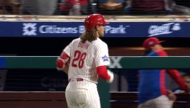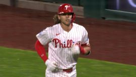 Among all NL players, ranked first in SF (10), fourth in singles (124), T-eighth in multi-hit games (46), ninth in AVG (.280) & hits (164) and 10th in AB (586) ...His 10 sacrifice flies were the most by a Phillie in a season since 2001, when Scott Rolen had 12...Tied Kyle Schwarber for the team lead in go-ahead RBI (21)...Posted a .352/.394/.541 slash line (.935 OPS) in 175 PA against LHP...Per Statcast data, his .290 xBA (expected batting average) ranked in the 98th percentile among qualifying MLB hitters...Made his second career Opening Day roster (also: 2021)...Batted leadoff for the first time in his career on 5/4 vs TEX...Slugged his first career game-tying HR in the ninth inning or later of a game on 6/7 at MIL (Josh Hader)...Recorded his first career multi-HR game on 7/8 at STL with a pair of solo homers against Adam Wainwright...Was on the restricted list, 7/12-13...Had a career-high 14-game hitting streak from 7/8-29, during which he posted a .471/.491/.647 slash line (1.138 OPS)...Led MLB with a .434 AVG in July (min. 50 PA); became the first Phillies player to hit over .430 in any calendar month (min. 50 PA) since Pat Burrell hit .435 in July 2007...On 8/21 vs NYM, logged his second career multi-HR game (other: 7/8 at STL) and collected a career-high six RBI...His 19 RBI in August were his most ever in a single calendar month (previous: 16 RBI in September 2020)...Hit .301 (100-332) in his final 84 games of the regular season (beginning 6/24); his .301 AVG in that span ranked 5th in the NL (min. 275 PA)...From 7/5-end of the regular season, slashed .321/.352/.487 (.839 OPS) in 88 PA with RISP...Made his first career postseason appearance in Game 1 of the NLWCS at ST...on 10/7 (started at 3rd base; 1-3, 2B, RBI, HBP)...Became just the second player in franchise history age 26 or younger to collect an XBH in his postseason debut, joining Greg Luzinski (25), who doubled in Game 1 of the NLCS on 10/9/76 vs CIN...Made his first career WS appearance in Game 1 on 10/28 at HOU (1-5, 2B, 2 RBI) and became the youngest Phillie (26 years, 86 days) ever with multiple RBI in a WS game...His HR in Game 3 of the WS vs HOU (Lance McCullers Jr.) on 11/1 was the 1,000th HR hit in the history of the Fall Classic...Hit safely in five of his six World Series games...His six extra-base hits in the postseason were the most in franchise history by a third baseman (primary position) in a single postseason.