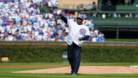 Andre Dawson throws out first pitch before WC Game 2
