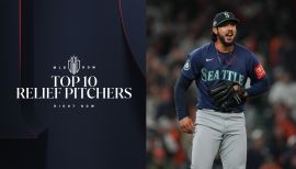 Was 3-7 with six holds, 22 saves, a 2.12 ERA (14 ER, 59.1 IP), 26 walks, 77 strikeouts and a 0.96 WHIP...Opponents hit just .153 (31-for-202) against him...Was named to the 2024 American League All-Star team for the first time in his career, but did not pitch in the game...Was 2-3 with 15 saves, a 1.41 ERA (six ER, 38.1 IP), 18 walks, 46 strikeouts and a 1.04 WHIP in 38 games before the break...Did not allow a hit in 12 consecutive appearances spanning 12.1 innings pitched, from July 5-Aug. 14, setting a franchise record for most consecutive hitless appearances, surpassing the 10-game streaks by Paul Sewald (2022), Marc Rzepczynski (2017), Charlie Furbush (2015), George Sherrill (2007), Jeff Nelson (2001) and Erik Plantenberg (1993)...He fell one inning shy of setting the franchise record for hitless streak by innings, trailing only the 13.0-inning streak by John Montague from July 22-30, 1977...Struck out the side in order five times: March 29 vs. BOS, April 16 vs. CIN, July 21 vs. HOU, Aug. 23 vs. SF and Sept. 19 vs. NYY...His two saves with four-plus outs (vs. Kansas City on May 13 and May 15) made him the first Seattle pitcher to record multiple four-plus-out saves in a single series since Bobby Ayala (June 19 and June 22, 1997 at Texas)...Recorded seven saves of at least four outs, tied for the most in the Majors (also: Robert Suarez, SD)...His seven four-plus outs saves were the most by a Seattle pitcher since J.J. Putz (12 in 2007)...Did not allow a run in 14.1 consecutive innings over 14 appearances from June 28-Aug. 14, the longest scoreless streak by a Mariners reliever in 2024...Held opponents to a .153/.259/.257 slash line (.516 OPS)...Among AL relievers with at least 50.0 IP, his .153 opponents' average was the second-lowest, his .257 slugging percentage was fourth-lowest and his .516 opponents' OPS was the ninth-lowest...In 12 games in May, went 1-0 and 7-for-7 in save opportunities with a 0.68 ERA (one ER, 13.1 IP), one BB and 19 strikeouts, holding opponents to a .152 (7-for-46) average.
