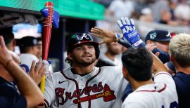 Awards: National League All-Star, N.L. Player of the Month (July), N.L. Player of the Week (7/10)...MLB Ranks: Total Bases (second, 325), Extra-Base Hits (second, 79), Home Runs (fifth, 38), Slugging Percentage (eighth, .528), OPS (ninth, .877)...NL Ranks: Extra-Base Hits (first, 79), Total Bases (first, 325), Home Runs (third, 38), Slugging Percentage (fifth, .528), OPS (fifth, 877), Hits (8th, 168), Doubles (T8th, 39)...25-year-old Austin Riley finished his four Major League season...He finished with a .273 batting average (168-for-615), 38 home runs, 93 RBI and 90 runs...Selected to his first All-Star Game...On Aug. 1 agreed to a 10-year contract worth $212 million through the 2032 season, with a club option for 2033...Recorded multiple hits in 50 games, tied for third in the N.L. and seventh in MLB...In 2021 and 2022 combined, his 102 multi-hit games are tied for fourth in MLB...Finished the season with 38 home runs and 39 doubles, the only player in MLB with at least 36 of each...One of only 10 players that made it to the 30/30 mark...Belted a career-high 38 home runs, beating the 33 he hit in 2021...Was one of five players to hit at least 38 home runs this season...Since the club moved to Atlanta in 1966, only five other infielders have hit at least 38 home runs in a season: Freddie Freeman (38, 2019), Chipper Jones (45, 1999; 38, 2001), Andres Galarraga (41, 1998), Darrell Evans (41, 1973) and Dave Johnson (43, 1973)...Jones and Evans are the only other primary Atlanta third basemen to hit 38 home runs since 1966...On Aug. 2 was named the July National League Player of the Month...His 26 extra-base hits in July set a new franchise record for most in a month... Henry Aaron held the previous record, hitting 25 in July 1961...His 26 extra-base hits in July were the most in MLB, while his 11 home runs finished second...No other MLB player had more than 18 extra-base hits in July...Richard Hidalgo (HOU, 27) was the last player, league-wide, to reach 26 extra-base hits in a month, doing so in September 2000...Had 26 extra-base hits in 26 games (11 HR, 15 2B) from June 30-July 31...He’s the only player in modern-era Braves history to have than many in that span...Hall-of-Famer Rogers Hornsby held the old record, hitting 25 in a 26-game span in 1928...Hit 11 home runs with a .423 batting average in July...Became the second Brave in franchise history to finish a month with at least 10 home runs and a .400 batting average...Chipper Jones did it in July 1999 (11 HR, .412 BA)…Ryan Zimmerman (WSH, .420/11 HR) was the last MLB player to do it...His 11 home runs in July were the most he’s had in a single month in his career...Had 16 multi-hit games in July, the third most by a Brave within a single month in the Atlanta era...Felipe Alou (August 1968) and Ralph Garr (May 1974) each share the record with 17 multi-hit games in a single month...Riley became the first major leaguer with 16 multi-hit games in a month since José Altuve had 16 for Houston in July 2017...On Aug. 9, tied Henry Aaron’s franchise record (1959) as the fastest player to reach 30 home runs and 30 doubles in a season...They each did it in 111 games...Had an 18-game hit streak that snapped on July 27... It was the longest active streak in MLB, the longest by a Brave in 2022 and the longest of career...It was the longest hitting streak by a Brave since Freddie Freeman (18 games) from August-September, 2020...In his first 40 games of the season, hit .224/.309/.436 with eight home runs, 17 extra-base hits and 18 RBI...In the 119 games following, dating to May 23, hit .290/.363/.560 with 30 home runs, 62 extra-base hits and 75 RBI.