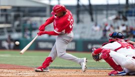 Split the season between AA Akron and AAA Columbus, batting a combined .263 (109-for-415) with 26 2B, four 3B, 21 HR, 68 RBI, 73 runs and 20 steals in 118 games (.392/.496/.888)…He was the only catcher in MiLB in 2022 with a 20/20 season, leading the system w/a .888 OPS, second in walks (82), slugging pct (.496) and OBP (.392) and fifth in HR (21)… The only two 20HR/20SB catchers in MLB history are Pudge Rodriguez (TX, 1999) & J.T. Realmuto (2022, PHI)…Started the year at AA Akron and was promoted to Columbus on June 21…Named to the Int’l League Postseason All-Star team…From 6/21-end of season he was T7th in the Int’l League in HR (15), ninth in OPS (.880) and eighth in RBI (47)… Had four straight multi-hit games from 5/17-5/21...Joined his brother Josh on the active roster on Oct. 1, becoming the first set of brothers on the same Cleveland roster since the Alomars in 2000… On Oct. 2 vs. KC made first ML start at DH, batting fifth behind his brother, Josh, becoming the first set of brothers to hit consecutively for Cleveland since Joe (7th) and Luke (8th) Sewell on 8/27/1930 vs. CWS (G2)… Last done in the Majors by the Romine’s (Andrew/Austin) for the Cubs on 8/25/2021…First set of brothers to play in same game for Cleveland since the Alomar’s in Oct. 2000...With Cleveland appeared in four games at catcher, made the one start at DH and was on both Postseason rosters, but did not appear.