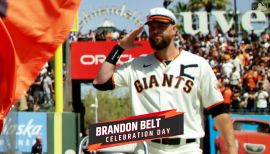 Brandon Kyle Belt... Nicknames include Baby Giraffe, Bob, and The Captain... Married his high school sweetheart from Hudson High, Haylee Stephenson, on Dec. 3, 2010...The couple have two sons, Greyson and August...August was named in honor of August “Augie” Garrido, who coached Belt at the University of Texas... Attended the University of Texas from 2008-2009...During the 2009 campaign, batted .323 with 28 extra-base hits and 43 RBI in 63 games, eventually losing to LSU in the College World Series finals...Played 1,192 career games at first base for the Giants, trailing only Willie McCovey (1,775) for the most in the San Francisco era of the franchise (1958-present)...His 37 career postseason games as a first baseman are the most in Giants franchise history... Hosts an annual charity fishing tournament, called the Brandon Belt 100K Grand Slam, benefiting The Father’s Heart of Brazil, an orphanage providing endangered children with immediate safe refuge as it also seeks to find long-term solutions for them and their families... Set the MLB record for most pitches seen in a single at-bat with 21 against LAA starting pitcher Jaime Barria on April 22, 2018...The at-bat lasted 12 minutes and 45 seconds, contained 16 foul balls, and ended with a fly out to right field.