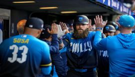 Reached double-digit HR for the fourth straight season...His 59 runs scored set a single-season career high, while his 25 doubles matched his mark from 2023...Led the Phillies with six outfield assists, which ranked T-11th in the National League...Slashed .303/.358/.478 with an .836 OPS in 116 games (374 PA) after snapping a 0-for-31 skid on 5/3; raised AVG from .095 to .280 for the season...Hit .500 (8-for-16) with two walks in 18 PA as a pinch-hitter; was the first Phillie since Brad Miller (14) in 2021 with at least eight hits as a pinch-hitter...His eight pinch-hits were tied with ATL’s Eli White for first in the NL and ranked tied-for-third in MLB...On the 10-day IL from 4/17-5/2 with a right hamstring strain; hit .300 in six rehab appearances with Lehigh Valley (AAA)...On 5/14 vs STL (Game 2), was the first Phillies OF with two assists in a game since Bryce Harper on 9/26/21...Received MLB Play of the Week honors on 5/27, the second Phillie ever to win the award (Maikel Franco, 9/16/19) - Threw out Logan Davidson at home plate in the 10th inning on 5/24 at ATH to preserve a 6-6 tie before the Phillies won, 9-6, in 11 innings...Notched the first walk-off hit of his career with a no-out single in the 11th inning on 6/9 vs CHI...Played all three OF positions on 6/15 vs TOR for the second time in his career and joined Jayson Werth (2x in 2008) as the only Phillies players in the expansion era to do so multiple times...Scored on catcher’s interference on 7/21 vs BOS with no outs in the 10th inning, the second such walk-off in MLB’s live ball era, since 1920 (8/1/71, LAD/CIN)...Homered in back-to-back games from 7/29-30 and 8/5-8...Matched his career high with three XBH on 8/8 at TEX...Tallied his fifth and sixth career four-hit games on 8/8 at TEX and 9/1 at MIL...Clubbed his 50th career HR as part of back-to-back HR with Harrison Bader in the fourth inning on 9/5 at MIA...In the postseason, started all four games of the NLDS vs LAD, three games in CF and one in LF.