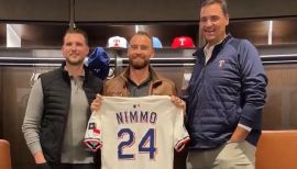 Brandon Tate Nimmo \[NIH-mo\] graduated from Cheyenne East (Wy.) High School where he played American Legion ball for Post 6 because his high school did not have a baseball team…Won the MVP at the 2010 Under Armour All-America Game at Wrigley Field…Also played football and ran track...Committed to the University of Arkansas before signing with the Mets...His father wrestled collegiately, while his brother played outfield for four years at the University of Nebraska, including the 2005 College World Series...Participated in the inaugural Kids Holiday Shopping Spree on Dec. 14, 2016 at Target in College Point, Queens...Helped children pick out holiday gifts for them and their families...Played for Team Italy during the 2017 World Baseball Classic (three games)...Suffered a strained right hamstring while playing for Italy...Attended Governor Andrew Cuomo's New York State of the State in Albany on Jan. 4, 2018...Received the Ben Epstein/Dan Castellano Good Guy Award at the New York BBWAA Dinner on Jan. 26, 2019...Was Santa at the Mets annual Kids Holiday Party from 2017-19...Was an elf at the Mets annual Kids Holiday Party in December 2016 and 2022 to help hand out presents to children...Chelsea and Brandon Nimmo welcomed their first child, Tatum Jane, during the 2024-25 offseason...Was promised a car, a 2010 Nissan Altima, for accepting a scholarship to the University of Arkansas...Still has that car today...After re-signing with the Mets on an eight-year contract in 2022, said he "splurged" on an Audi RSQ8, but plans to keep the Altima, saying "I don't think I can get rid of her. I purely think it's sentimental at this point...But the Golden Goddess, she'll always be around."...Said he may drive the Altima to the first day of the season each year to remember where he came from and stay humble...Has spent his entire career with the Mets since being selected 13th overall by New York in 2011...Signed an eight-year contract as a free agent during the 2022-23 offseason to remain with the club...Said at the press conference announcing his new deal: "Feels good to put this jersey back on and know it's not coming off."...Is consistently among the league leaders in walk rate and sprints to first base after drawing a base on balls...Doesn't remember when he started that habit, but traces it back to his dad telling him to hustle down the line so he would be able to take second base in case the catcher did not catch ball four...His wife, Chelsea, has worked as an ER Nurse in Elmhurst, Queens...Is an avid fisherman – especially shark fishing...Took batting practice from assistant minor league clubhouse manager and left-handed thrower Drew Dunton during the 2020-21 offseason to improve his approach against southpaws... Nimmo has batted .278 (83-for-299) with a .382 OBP against LHP in 2021 after hitting .243 with a .358 OBP against lefties from 2016-20...His dad encouraged him to swing left-handed...Was a switch-hitter until he was about 10 years old...Does most things right-handed, including golf...His dad did not want him to mess up his swing and it was much harder to find spare lefty clubs...His favorite player growing up was Todd Helton...Nimmo and his father worked on emulating Helton's swing when Nimmo was a kid...Nimmo and Helton spoke for the first time during spring training in 2021...Was the first-ever first-round pick and 16th major league player from Wyoming.