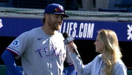 Brandon Tate Nimmo (pronounced NIH-mo)…wife, Chelsea…couple welcomed their first child, a daughter, during the 2024-25 offseason…will call Globe Life Field home after playing just three games in Arlington throughout his 10-year big league career…during his Rangers introductory press conference on 12/4/25 at GLF, Nimmo said his lone career series at Texas (6/17-19/24) marked the last time his grandmother, Claudine, saw him play before she passed… Brandon went 5-for-12 with two HR and five RBI in that set against the Rangers…chose No. 24 as his Texas number because his older brother, Bryce, wore it when the pair played in Wyoming… Bryce and Brandon were Ken Griffey Jr. fans growing up…Bryce went on to play outfield for the University of Nebraska, including appearing in the 2005 College World Series…father, Ron, was a collegiate wrestler and was the one to encourage Brandon to swing left-handed, this after he was a switch-hitter through age 10…Nimmo does most things right-handed, including golf, which was recommended by Ron so that Brandon maintain his lefthanded baseball swing…spent previous offseasons living in Port St. Lucie, Fla., while he was a Met…is an avid fisherman and enjoys shark fishing…favorite player as a child was Todd Helton – the pair met in New York-NL spring training in 2021.