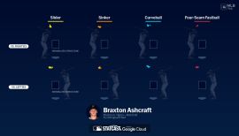 Braxton Blake Ashcraft...Wife’s name is Cassidy...Is a 2018 graduate of Robinson (Texas) High School, where he was 11-1 with 103 strikeouts in 70.1 innings as a senior...Had 37 touchdowns among his 104 receptions and 2090 yards as a junior on Robinson’s football team in 2016...Was committed to pitch at Baylor (Texas) University...Was signed by Pirates scout Phil Huttmann.