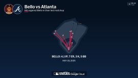 Began the season on the 15-day injured list from 3/27-4/17 with right elbow inflammation...Made a rehab start with Triple-A Worcester on 4/11 vs. Columbus and allowed one run in 6.0 IP (4 H, 4 SO, HB)...In his season debut on 4/17 vs. LAA (Patriots Day), allowed five runs in 2.2 IP (8 H, BB, 5 SO, HB)...Optioned to Worcester on 4/24, but did not pitch for the WooSox before he was recalled on 4/28...Posted a 2.45 ERA (16 ER/58.2 IP) over 10 starts from 4/29-6/23...Prior to that span, the most recent Red Sox to post a sub-2.50 ERA in a 10-start span prior to turning 25 were Jon Lester, Aaron Sele, Roger Clemens and Dennis Eckersley...Won a career-high three consecutive starts from 5/4-17, allowing five ER in 16.0 IP during that span...Made three straight starts with more than 6.0 innings and only one run allowed from 6/18-29...Since the start of 2020, the only other pitchers to do so at age 24 or younger are Spencer Strider (8/12-25/2023) and Alek Manoah (8/27-9/7/2022)...Struck out eight batters in 7.0 innings on 6/18 at NYY-G2 (4 H, R, 3 BB), setting a career high that he would surpass on 9/15 at TOR (10 SO)...Took a no-hitter into the eighth inning on 6/29 vs. MIA...Allowed two hits in the eighth before exiting; one of the runners later scored (7.0 IP, 2 H, R, BB, 5 SO)...During June, posted a 2.14 ERA (8 ER/33.2 IP) in five starts...Prior to Bello, the last Red Sox under the age of 25 to allow 0 HR and post an ERA that low over a five-start span was Roger Clemens in 1986...Recorded a career-best seven consecutive quality starts from 6/5-7/14 (4-1, 2.51 ERA, 13 ER/46.2 IP)...Was the 1st Red Sox pitcher to do so prior to turning 25 since Eduardo Rodriguez in 2017 (also 7, 4/23-5/26/17)...Allowed three-plus runs in each of his first four starts after the All-Star break, from 7/14-8/1 (6.55 ERA), then allowed one or two runs in each of his next five starts from 8/7-29 (2.79 ERA)...Recorded his first career 10-strikeout game on 9/15 at TOR (6.0 IP, 4 H, 3 R, BB, 10 SO).