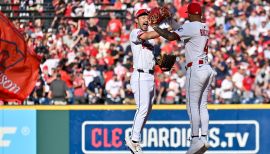Spent first full season in the Majors and was named a finalist for the Rawlings Gold Glove Award at shortstop, finishing the season with 11 defensive runs saved, tied for second among qualified MLB shortstops (FanGraphs), while recording plus-five outs above average (Baseball Savant)...Rocchio and Andrés Giménez were the only pair of qualified middle infielders to finish with 10-or-more defensive runs saved this season...Launched his first career home run on June 7 at Miami, his first of eight in 2024…Also provided his first career postseason round-tripper in ALCS Game 1 at Yankee Stadium...Hit safely in each of Cleveland’s eight postseason tilts, batting .407 (11-for-27) over that stretch...Marked the longest hit streak to begin a player's postseason career in club history and tied for the fourth-longest hit streak by a Clevelander in the playoffs...Also tied with LAD’s Tommy Edman for the longest hit streak of the 2024 postseason by any player...Rocchio was the first player to tally an eight-game hit streak to begin his postseason career since ARI's Ketel Marte, who registered a 20-game hit streak to start his postseason career from 2017-23...Delivered two walk-off plate appearances in 2024…Capped off a three-run 10th inning to give Cleveland a 5-4 comeback victory against Minnesota on Sept. 18…His first career walk-off plate appearance was an RBI single on May 8 vs. Detroit in the 10th inning...Rocchio notched a career-high four RBI in four plate appearances on Sept. 3, registering just one at-bat (SF, HBP, 2R-HR, RBI-BB)...Became the third Clevelander with four RBI in a game with one AB (min. four PA), joining Travis Hafner (May 17, 2006 vs. KC; three BB, GS) and Rick Manning (Aug. 29, 1975 vs. MIN; two BB, two SH, GS)...Rocchio became the first player in MLB history to record four RBI in a game with one AB while hitting ninth (min. four PA)...Was tied for second in the AL with seven bunt hits...Appeared in 142 games at shortstop, making 121 starts...Was fourth on the club with 44 walks...Ranked eighth in the AL in B-R Defensive WAR (1.8) and tied for 17th in CS (six).