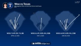 Went 15-7 with a 2.94 ERA (61 ER, 186.2 IP), 36 walks, 198 strikeouts and a 0.93 WHIP in 30 starts...held opponents to a .200 average...Finished fifth in 2025 BBWAA Cy Young Award voting...Made first two professional relief appearances in the ALCS against Toronto...allowed three runs in four innings...Missed ALDS due to injury...Has recorded back-to-back seasons of a sub-3.00 ERA and a sub-1.00 WHIP...Is the only starting pitcher in Mariners history with multiple such seasons...Is one of four pitchers in MLB to have a sub-3.00 ERA and a sub-1.00 WHIP since 2024, joining Zack Wheeler-PHI, Tarik Skubal-DET and Paul Skenes-PIT (min. 300 IP)...Woo’s 2.92 ERA over that span is seventh-best in the Majors...Was selected to the American League All-Star team for the first time in his career...tossed a scoreless third inning with one strikeout...Began his season with 25 consecutive starts of six innings and two or fewer walks, which was the second-longest streak of starts in MLB history to begin a season...His run of six inning starts was also the longest to begin a season in Mariners history...Recorded 21 quality starts, tied for the fourth-most in the Majors, trailing only Logan Webb-SF (22), Cristopher Sánchez-PHI (22) and Garrett Crochet-BOS (22)...Was one of six pitchers in the Majors with 175+ strikeouts, and 40 or fewer walks, joining Tarik Skubal-DET, Sonny Gray-STL, Zack Wheeler-PHI, Joe Ryan-MIN, Jacob deGrom-TEX...Was the only AL pitcher this season with two starts of seven-plus innings pitched and one or fewer hits allowed...Struck out a career-high 13 batters on Sept. 13 vs. Los Angeles-AL...also induced a career-high 23 swings-and-misses in the game...Took a no-hitter into the eighth inning on July 10 at New York-AL, finishing with 7.1 innings pitched, two hits, two runs, two walks and five strikeouts...His 27 starts of at least six innings this season led the Majors, ranking ahead of Crochet-BOS (25), Sánchez-PHI (24) and Logan Webb-SF (24)...Held opponents to a .200/.243/.353 slashline...his .210 opponents average is the 13th-lowest in MLB history among starters with at least 350 innings pitched.