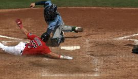 Chandler Simpson throws out Caleb Durbin at home