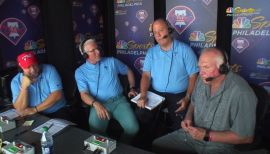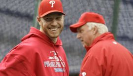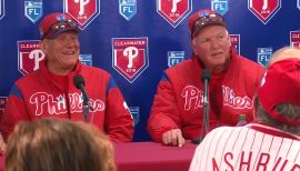 Charlie Manuel and Larry Bowa chat with Phillies fans