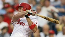 Second straight season as a non-roster invitee to Phillies spring training...Batted .463 (19-41), 5 2B, 3 HR, 11 RBI in spring training, but began the season with Scranton/Wilkes-Barre (AAA)...Had his contract purchased on 5/21...Homered in his 2 games prior to being called up...At 33 years, 111 days old, made his ML debut on 5/26 vs MIL, making him the oldest player to make his ML debut with the Phillies since Izzy Leon on 6/21/45 at 34 years, 168 days old...Began his ML career 0-for-13 before getting his first hit and RBI, 6/16 vs TB (James Shields)...Slugged his 1st ML HR, 7/19 at SF (Mike Thompson)... Became just the 3rd non-pitcher in ML history to hit his first HR at age 33 or older, joining Alan Zinter (34 in 2002) and So Taguchi (34 in 2003)...Hit his 2nd HR in his very next game, 7/21 vs ATL...Had his first career 4-hit game, 8/3 at STL...Batted .571 (16-28) with RISP over a 20-game span, 6/16-8/19...Hit .414 (12-29) in his final 10 games of the season; 4 of his last 7 hits were doubles.