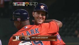 LAA@HOU: Clark singles for his first MLB hit in fifth