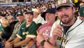 Callum MacDonald reacts to brother Connor's strikeout