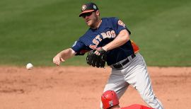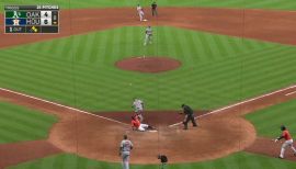 versus Boston, starting at second base...recorded his first major league hit in his first at-bat, a run-scoring infield