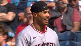 Washington's "Nationals Way" Award winner following a strong 2024 season...Named the Nationals Minor Leaguer who best demonstrates the professionalism, leadership, loyalty, passion, selflessness, durability, determination and work ethic required to play the game the “Washington Nationals Way.”...Led Washington’s Minor League system in triples (10), tied for the lead in doubles (23) and ranked in hits (second, 127), total bases (T3rd, 188), walks (T3rd, 54), OBP (fourth, .347), OPS (fourth, .735), runs scored (fourth, 69), batting average (fifth, .262) and stolen bases (T6th, 25)...Batted .262 with 23 doubles, 10 triples, six homers, 45 RBI, 54 walks, 25 stolen bases and 69 runs scored across 130 games between High-A Wilmington and Double-A Harrisburg...Posted a 15-game on-base streak from April 12-May 2 with Wilmington, the longest on-base streak of his career...Hit .309 (17-for-55) with two doubles, three triples, six RBI, 10 walks, six stolen bases and 12 runs scored over that span.