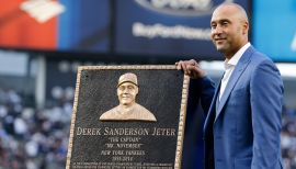 Full name is Derek Sanderson Jeter… was signed by Dick Groch… graduated in 1992 from Kalamazoo Central High School (Mich.), where he hit .508 (30-for-59) with 4HR, 23RBI, 21BB and 1K in 23 games as a senior… was 12-for-12 in stolen base attempts, had an .831 slugging percentage and a .637 on-base percentage… hit .557 with 7HR as a junior… was named 1992 High School "Player of the Year" by the American Baseball Coaches Association… was elected into the Kalamazoo High School Hall of Fame in December 2007… had his high school's baseball field dedicated to him on 12/17/11... Since 1996, his Turn 2 Foundation has enjoyed 18 years of supporting various programs and activities designed to motivate youth to "Turn 2" a healthy lifestyle, academic achievement and leadership development and "turn away" from drugs and alcohol… the foundation has awarded more than $19 million to support signature programs in Tampa, where Derek resides; New York, where he works; and West Michigan, where he grew up... Along with his "Jeter's Leaders," hosts a bi-annual leadership conference that brings together high school student leaders from across the United States… holds his annual Holiday Express to reward program participants for positive behavior… hosts annual baseball clinics in Kalamazoo, New York City and Tampa… hosts two annual fundraisers-a dinner in New York City during the summer and a Celebrity Golf Classic in Tampa, Fla. in January... Received the Joan Payson Award for community service in 1997, presented annually by the New York chapter of the BBWAA… won the New York Press Photographers' annual "Good Guy" Award in 1998… also received the Babe Ruth Award from the BBWAA New York Chapter in 2000, awarded annually to the Postseason MVP… was one of three finalists for the 2008 "Marvin Miller Man of the Year" Award given annually by the MLB Players' Association to the player whose on-field performance and contributions to his community inspire others to higher levels of achievement… won the Joe DiMaggio "Toast of the Town" Award from the BBWAA New York Chapter for the third time in 2009 (also 1999 and '00)… along with teammates Andy Pettitte, Jorge Posada and Mariano Rivera, was honored with the "Willie, Mickey and the Duke" Award from the New York BBWAA in 2009... Selected as the 2009 "Roberto Clemente Award" winner, given annually to the Major League Baseball player who combines a dedication to giving back to the community with outstanding skills on the baseball field… was honored with the Sporting News "Good Guy in Sports" Award in 2002 and also received an ESPY for the Best Play Award that same year for his "flip play" in Game 3 of the 2001 ALDS at Oakland... Created "Jeter Publishing" with Simon & Schuster, a book publishing imprint that will encompass adult non-fiction titles, middle grade fiction, children's picture books and ready-to-read children's books… will also publish books featuring interesting personalities and themes in sports, pop-culture and other arts... Received an honorary Doctor of Humane Letters degree from Siena College in 2012, in recognition of his leadership, accomplishments on the baseball field and dedication to improving the lives of young people through his Turn 2 Foundation... Named the recipient of the 2011 Lou Gehrig Memorial Award, presented annually by the Phi Delta Theta International Fraternity to the Major League Baseball player who best exemplifies Lou Gehrig's spirit and character... Selected by USA Today as their 2010 "Most Caring Athlete," gracing the publication's cover on the 6/27/10 weekend edition... Each season from 2010-12, topped the list as having the most popular licensed jersey in Major League Baseball based on sales of official Majestic jerseys for each calendar year... Donated $500,000 to launch the "Derek Jeter Center at Phoenix House" in Tampa, an outpatient counseling center for troubled teens combining individual and family substance abuse treatment… attended ribbon-cutting on 10/2/09... Named the No. 1 sports celebrity in WFAN's (660AM) Top 20 New York Athletes of the Last 20 Years in December 2007… selected as a member of Time Out New York's "Top 40 under 40" in 2008... Hosted Saturday Night Live on 12/1/01.