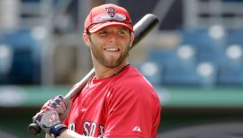 Did not land on the DL but was limited to 135 games, his 2nd fewest in a season since becoming a regular in 2007 (75 G in 2010)...Last played on 9/8 vs. BAL...Underwent successful left thumb and wrist surgery (first dorsal compartment release and a tenosynovectomy of his left wrist) on 9/11, ending his season...Procedure was performed by Dr. Matt Leibman at Newton-Wellesley Surgery Center in Wellesley, MA...Led the Sox with 153 hits, 45 multi-hit games, and 11 games with 3+ hits...Topped club qualifiers with a .278 AVG...Named Red Sox Heart and Hustle Award Winner, his 5th straight year receiving the team award...Appeared in 131 of Boston's first 135 games through 8/30 (129 starts)...Missed Boston's next 5 games, but started 4 more from 9/5-8 before being shut down...Won the 2014 AL Rawlings Gold Glove Award at 2B and tabbed as the best defensive 2B in the AL in Baseball America's annual Best Tools survey...Committed a single-season career-low 2 errors...Posted a career-best and MLB-leading .997 fielding pct. at 2B (654 chances), the best-ever mark by a Red Sox 2B (prev. Mark Loretta in 2006, .994)...Batted .288 (115-for-399) against right-handed pitchers, his best mark since 2010 (.304)...Made his 8th career Opening Day start on 3/31 at BAL and went 2-for-5...Is the only Red Sox player in the last 100 years to hit safely in each of his first 8 career Opening Day games (.394, 13-for-33)...Notched a season-high 4 hits on 4/2 at BAL (4-for-5, 2 R)...His 2nd 2B of the game on 5/6 was the 300th of his career...Became the 7th-fastest major leaguer ever to reach the mark, doing so in his 1,048th career game...With 121 career SB at the time, became the fastest player in modern major league history (since 1900) to both 100 SB and 300 2B...Hit his 100th career HR on 5/2 vs. OAK, a grand slam in the 6th inning off Ryan Cook that also pushed him to the 500-RBI plateau...Became the 3rd Red Sox to hit a grand slam for his 100th career HR, along with Mo Vaughn on 8/3/95 at DET and David Ortiz on 5/28/04 vs. SEA (Source: Elias)...Batted .331 (52-for-157) in 39 games from 6/28-8/14, 7th best in the AL in that time...Committed an error in the 1st game of a doubleheader on 7/5 vs. BAL, snapping a 61-game (301 chances) errorless stretch that began on 4/24 vs. NYY...Hit .302 (45-for-149) with 7 2B, 3 HR, and 16 RBI in his last 36 games beginning 7/25...Had multiple hits in 16 of those first 30 games through 8/27 (.328, 42-for-128)...Stole 2nd and 3rd base on the same play on 8/9 at LAA in the 14th inning when the Angels didn't cover 3rd...Hit .297 (33-for-111) with 3 HR in August, his best marks in any month of the season...Homered in back-to-back games on 8/25-26 at TOR...In the 2nd of those games, had a season-high-tying 4 RBI (also 5/2 vs. OAK).