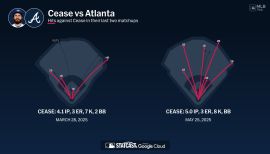 Acquired by SD from CWS in a five-player deal on March 13 as the Padres broke camp in Peoria, Ariz., and met the team for the Seoul Series in South Korea to open up the 2024 season…although the trade was made official prior to the Padres departing and Cease was in Arizona with the White Sox, Cease had to locate his passport and pack, meeting the team 24 hours after the team charter had arrived...Went on to lead the SD staff in starts (33), IP (189.1), strikeouts (224), wins (14), quality starts (16), opponent OPS (.601), SO/9 IP (10.6), opponents' AVG (.200), total pitches (3,188) and pitches per game (96.6)…His 33 starts led the Majors along with 7 others, and was one of just four NL starters to make 33 starts...From 2021-24, Cease’s 130 starts led the Majors, ahead of Aaron Nola (129), José Berríos (128), Patrick Corbin (126) and Kevin Gausman (126)...Cease is joined by Aaron Nola, José Berríos, Patrick Corbin Kevin Gausman, Kyle Gibson and Charlie Morton as the only 7 pitchers to have made 30+ starts each season from 2021-24...His 18 100+ pitch outings in ’24 were most among all Major League hurlers, with CIN Hunter Greene ranking second with 16...he owned more than half of the Padres 100+ pitch outings (18 of 33) in 2024...Since his first full season in '21 through ‘24, his 96.4 pitches per game were the fifth-highest average among all qualifying pitchers (min. 400 IP), trailing only Gerrit Cole (97.9), Sandy Alcantara (97.5), Zack Wheeler (97.1) and Luis Castillo (97.0)…Among all qualifying NL hurlers in ‘24, he ranked first in whiff rate (32.4%) and total whiffs (498), second in hits allowed/9 IP (6.51), tied-for-second in total strikeouts (224), third in pitches thrown (3,188), third in SO/9 IP (10.65), third in opponent OPS (.601), fourth in base runners allowed/9 (9.70), fourth in WHIP (1.07) and sixth in HR/9 IP (0.86)...With 224 strikeouts on the campaign, Cease eclipsed the 200-strikeout mark for the fourth straight season...the last five pitchers to post 200+ strikeouts in at least four straight seasons are Cease (four seasons, 2021-24), Aaron Nola (five seasons, 2018-23), Gerrit Cole (five seasons, 2018-23), Charlie Morton (four seasons, 2018-22) and Max Scherzer (nine seasons, 2012-21)...His 891 strikeouts from 2021-24 led the Majors, with the next closest being Corbin Burnes (858) and Aaron Nola (857)...Combined with rotation-mate Michael King (201 strikeouts) as the only NL duo in the same rotation to rank in the Top 5 in punchouts in ’24, also becoming just the second Padres duo to eclipse the 200-strikeout plateau in the same season 21 of his career 22 double-digit strikeout games have come since his first full-season in '21...the 21 double-digit strikeout games are tied for third-most 10+ strikeout games over that span with Corbin Burnes (21) and Kevin Gausman (21), trailing only Gerrit Cole (24) and Blake Snell (22)...Set a franchise record with 149 first-half strikeouts, passing Andy Benes' 138 in 1994 for the most strikeouts before the All-Star break in Padres history...With his fifth double-digit strikeout game of the season Sept 13 at SF, Cease became the fourth SP in MLB history to reach 1,000 strikeouts in fewer than 850.0 innings pitched, joining the three who were also at the ballpark that night to witness... Robbie Ray, Yu Darvish and Blake Snell...In 2023, Cease ranked among Major League leaders in swing and misses (fifth, 468), and in ‘24, his 496 whiffs led the Majors, ahead of KC Cole Ragans' 486...His 27 whiffs on July 13 at ATL tied-for-second-most in a game leaguewide in ‘24 with SF's Hayden Birdsong on July 21 @ COL, trailing only Blake Snell's 30 whiffs on July 27 vs. COL...In ’24, Cease threw the second-most breaking balls (1,753) in the Majors by a wide margin, with rotation-mate Matt Waldron's 1,422 ranking second…opponents hit .176 against his breaking stuff in ’24...From 2021-24, his 6,653 total breaking balls thrown were by far the most in the Majors, ahead of rotation-mate Yu Darvish (5,055), Charlie Morton (4,624) and Logan Gilbert (4,352)…Cease's slider was his 2nd-most used pitch (42.9%), and it generated a league-high 44.6 whiff% and league-best .159 AVG...On the season, he owned a 32.4 whiff rate that ranked in the 92nd percentile league-wide (league average was 25.0%)... he's ranked in the 83rd-plus percentile in whiff rate each season since his first full campaign in 2021...Since the beginning of the 2021 season, Cease had 14 starts with at least 5.0 innings pitched and no more than one hit allowed...Blake Snell (12) and Freddy Peralta (10) had the second and third-most starts, respectively...From ’21-24, Cease had eight outings allowing one hit-or-fewer across at least 7.0 innings pitched, which are the most such starts in the Majors over that time frame...Blake Snell has six such outings since '21, with four of those six coming in 2021-23 with SD, while rotation-mate Joe Musgrove, Max Scherzer, Carlos Rodon, Alek Manoah, Framber Valdez and Bowden Francis are the only other six hurlers with four such outings...Before being designated as one of the Padres three Seoul Series extras for the two-game series vs. LAD at the Gocheok Sky Dome, he made the start in the March 11 exhibition game vs. the LG Twins at the Gocheok Sky Dome, allowing just one hit (a solo HR) across 30 pitches (19 strikes) in 2.0 IP....made his state-side Padres debut in the March 26 exhibition vs. SEA with 4.0 IP of five-hit, three-run ball, striking out four and walking two.... he threw 46 of his 75 pitches for strikes...Made his regular season Padres debut March 30 vs. SF and was tagged with the loss, allowing three runs (2 ER) on two hits across 4.2 IP in SD's 9-6 defeat...he struck out six and walked two, receiving zero runs of support...Cease won his third consecutive start, lowered his season ERA to 1.82, and made Coors Field history in his fifth start of the season vs. the Rockies on April 22…he became the first and only pit