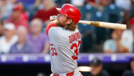 Hit .198 (100x505) with 71 runs scored, 23 doubles, 31 home runs, 79 RBI, 56 walks in 145 games. ...Trifecta - With 31 HR produced his third career 30-homer season (34 in 2018, 49 in 2019) and his fourth career 25-homer season...has tallied 30+ HR in three of his last four seasons with the only exception being the pandemic-shortened 2020 campaign (15 HR). ...Late Surge - In September & October, posted a .370 batting average with 8 doubles, 8 home runs, 13 RBI, a .460 on-base percentage and a .808 slugging percentage (1.268 OPS)...in his last 45 games beginning July 31, produced 12 HR, 25 RBI and a .975 OPS...22 of his last 35 hits were for extra bases (10 2B, 12 HR). ...A Grand - On Oct. 2 at PIT celebrated the 1,000th appearance of his Major League career with his 31st home run, a 2-run shot off Max Kranick, and a double. ...Leading Off - Made first career start batting leadoff May 25 at WSH...hit only career leadoff HR May 27 at WSH...from May 25-June 4, made nine consecutive starts batting leadoff, the only starts of his career at the top of the order. ...Ejected - Was ejected twice for arguing balls and strikes: July 31 at NYM (by Chris Segal) and Aug. 29 at MIA (Edwin Moscoso). ...500 Ribbies - Recorded his 500th career RBI June 13 vs. COL on 2-run HR off Antonio Senzatela.