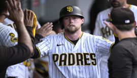 POSTSEASON: Played in all seven Padres' Postseason games between the Wild Card Series vs. ATL and the NLDS vs. LAD, batting .423 (11-for-26) with three doubles, four home runs, seven RBI, three walks and eight runs scored...had the highest average (.423), OBP (.500), SLG (1.000) and OPS (1.500) of any Padre in Postseason history with at least 30 plate appearances...In the NLDS alone, had an extra-base hit in four of the five games, batting .350 (7-for-20) with three doubles, three home runs, five RBI and six runs scored for a 1.359 OPS...his sole hitless game was in the decisive Game 5 of the NLDS at Dodger Stadium...with three home runs in the NLDS, finished one HR shy of the NLDS record: only Carlos Beltran (four in the 2004 NLDS with HOU) and Nick Castellanos (four in 2023 with PHI) had more...His 11 hits and four home runs in the Postseason led the Padres and were the most of any player on a club that failed to advance past the 2024 Division Series...Among all players in MLB Postseason history with at least 30 PA's, his 1.500 OPS in the 2024 playoffs was the fourth highest of any player in a single Postseason run, behind just Carlos Beltrán's 1.557 OPS in 2004, Barry Bonds' 1.559 OPS in 2002 and Manny Ramirez's 1.747 OPS in 2008...Has hit safely in 12 of his 13 career Postseason games...Between 2020 and 2024, his six HR and 12 RBI in that timeframe alone rank second all-time in Postseason franchise history, trailing only Manny Machado's seven HR and 13 RBI in the same timeframe...Seven of his 11 hits went for extra bases, tied with Manny Machado (also seven in 2022) for most extra-base hits by a Padre in a single Postseason in franchise history...Across his first five games in the 2024 playoffs, hit four HR without striking out once...the only other player in MLB history to have 4+ HR and zero SO over any five-game span in the Postseason was Lou Gehrig from 1928-32 (h/t @OptaStats)…Hit two home runs on Oct. 6 @ LAD in Game 2 of the NLDS, and it was his second-career Postseason multi-homer game (first was on Oct. 1, 2020 vs. STL)…he became the only Padre in club history to have two multi-homer Postseason games, and also became the first player in MLB history with two multi-homer Postseason games before turning 26...His double in Game 1 of the NLDS on Oct. 5 @ LAD was hit 118.9 mph off the bat, which marked the hardest hit ball of his career (regular or Postseason)…The 39 degree lunch angle on his home run in Game 1 of the Wild Card Series vs. ATL on Oct. 1 was his highest launch angle ever on a home run (regular or Postseason)…the home run was also the fourth anniversary of his first Postseason home run (hit two HR on Oct. 1, 2020 vs. STL at Petco in the Wild Card series vs St. Louis).