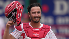Slashed .273/.351/.475 (.826 OPS) with nine XBH (3 2B, 3B, 5 HR), 14 RBI and 17 runs in 32 starts at catcher...Was 6-for-24 (25.0%) in throwing out attempted base stealers yet his 1.91 average pop time to second base ranked in the 93rd percentile among all ML catchers...On 5/22 vs LAD, slugged his first career HR (Tony Gonsolin)...Homered in consecutive games, 5/22 and 5/27, after not hitting a HR in his first 60 career games... Hit his first career walk-off HR on 6/15 vs MIA (Tanner Scott)…Was on the Phillies postseason roster for all four rounds, but did not appear in a game.