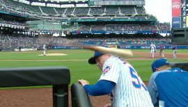 COL@NYM: Wolters' bat hits Sherlock in Mets dugout