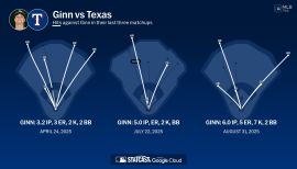 Went 4-7 with a 5.08 ERA and .801 opponents OPS in 23 games, including 16 starts, in a season interrupted by two stints on the injured list...Struck out 99 batters in 90.1 innings (9.86) and walked 31 for a strikeout-to-walk ratio of 3.19...Ranked 11th in the Majors among rookies in strikeouts, 14th in games started and 17th in innings pitched...Allowed a .260 opponents batting average, which broke down to .193 (37-for-192) with a .590 OPS against right-handed hitters compared to .340 (55-for-162) with a 1.046 OPS against left-handers…his career splits are .201 with a .586 OPS against righties, .333 with a .997 OPS against lefties...His opponents batting average dropped to .218 with runners in scoring position...12 of his 17 home runs allowed came with the bases empty as have 16 of 21 in his career...Was 3-2 with a 3.14 ERA and .679 opponents OPS in 10 games on the road compared to 1-5 with a 6.85 ERA and .900 OPS in 13 games at home…yielded 12 of his 17 home runs at Sutter Health Park…tied for the fourth-highest home ERA in the Majors among pitchers with 40 or more home innings...Went 4-7 with a 5.28 ERA and .832 opponents OPS in 16 starts, 0-0 with a 4.11 ERA and .635 OPS in seven relief appearances...Allowed 2-of-4 (50.0%) inherited runners to score…first batters faced were 3-for-7 (.429)...Posted a 7.31 ERA in the first inning, a 3.71 ERA in the second through fourth inning and a 6.04 ERA from the fifth inning on...Yielded a .119 batting average to the fifth hitter in the batting order...The A's were 8-8 (.500) in his starting assignments…tossed five innings or fewer in 11 of his 16 starts…logged at least one inning in each of his seven relief appearances, including two or more four times...Also went 1-0 with a 2.11 ERA and .586 opponents OPS in five starts, three of which came on rehab assignments, with Triple-A Las Vegas...Struck out 30 batters in 21.1 innings (12.66 per nine innings) and surrendered just one home run...Allowed a .203 opponents batting average, including .154 (6-for-39) with a .463 OPS against right-handed hitters and .257 (9-for-35) with a .721 OPS against left-handers...Opponents hit .167 with runners in scoring position.