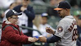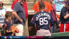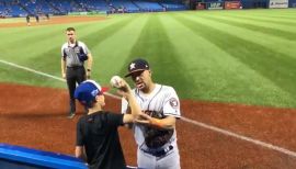 HOU@TOR: Bracamonte aids young fan with throwing tips