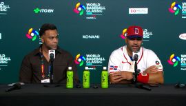 Born in Santo Domingo, DR, Peña spent his childhood in the Dominican before moving to Rhode Island with his family at the age of nine...Did not speak English when he moved to Rhode Island and credits playing sports as a way to connect with kids his age without knowing the language...Played baseball at Classical HS (R.I.) in Providence, serving as team captain his senior season in 2015...Also participated in track and field for four years and was a member of a state championship team...Drafted by Atlanta in the 39th round of the June 2015 draft, but did not sign...Was not heavily recruited by colleges until his senior season in high school...The University of Maine, on the other hand, had followed Jeremy the majority of his high school career...Peña credits that early interest in his decision to attend Maine, where he played three seasons for the Black Bears...Started every game during his collegiate career...At the time of the 2018 draft, was rated by ESPN.com as the No. 81 overall draft prospect...Drafted by Houston in the third round of the June 2018 draft with the 102nd overall selection...Signed by Astros scout Bobby St. Pierre...Peña is the son of Gerónimo Peña, who played second base in the Majors for seven seasons with St. Louis (1990-95) and Cleveland (1996)…During his MLB career, Gerónimo batted .262 (265-for-1,010) with 124 RBI and 54 steals...Despite being the son of a Major Leaguer, Jeremy never saw his dad play since he wasn’t born until Gerónimo’s playing career ended...Gerónimo shared an infield with Hall-of-Fame shortstop Ozzie Smith for part of his career...Throughout Jeremy’s life, Gerónimo has passed along many of Ozzie’s defensive lessons to his son...Peña hosts his community group, Peña's Pals, at the ballpark for select Friday night home games...The groups consist of students from Houston-area schools, selected based on character, grades and growth…The students attend Astros BP and meet with players, while also decorating a pair of cleats for Peña to wear that night...This initiative, along with others, earned him the Astros' nomination for the 2023 Roberto Clemente Award...Was added to the Astros' 40-man roster on Nov. 19, 2021...Is signed to a one-year contract for 2025.