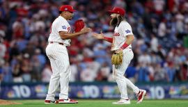 Among all MLB relievers, ranked first in ground ball rate (65.4%), tied for fifth in SV (32), 10th in SV % (86.5), T-10th in wins (seven) and 11th in ERA (2.06)...Began the season with MIN before being traded to the Phillies on 7/30...Between both clubs, set career bests in games (72), wins, saves, IP (70) and HR/9 IP (0.39)...Threw 271 pitches of 100.0+ mph, third-most in MLB behind CIN’s Hunter Greene (296) and SD’s Mason Miller (422)...Allowed three HR to 287 batters faced and only 11 of his 58 hits allowed were XBH (8 2B, 3 HR)...Posted a 33.3% SO rate as a Phillie (27 SO, 81 BF) and issued just one walk; faced 63 batters without issuing a walk from 7/28-9/16...His 27.00 SO/BB ratio was the best ever in a single season by a Phillies pitcher (min. 20.0 IP)...Went 32-for-37 in saves and posted a 1.47 ERA (6 ER, 36.2 IP) with 42 strikeouts against six walks in save situations...Recorded a three-out save on four pitches in his first game with the Phillies on 8/1 vs DET...Also marked the 75th save of his career on 8/1 vs DET in his 84th SVO, making him the tied-for-sixth fastest to reach that many behind E. Gagne (79 SVO), J. Smoltz (80 SVO), J. Axford (80 SVO), Z. Britton (83 SVO) and W. Davis (83 SVO)...Reached 103.3 mph on his fastball on 8/3 vs DET, his fastest pitch in 2025 and the fastest pitch recorded by a Phillies pitcher in the Statcast era...Converted a season-best 12 straight save attempts from 6/25-8/19, including each of his first six with the Phillies...Appeared in 17 games on a back-to-back and allowed only two ER in 17 IP (1.06 ERA) with a .417 OPP OPS...Faced 153 LHH and held them to a .467 OPS; RHH posted a .671 OPS against him in 134 plate appearances...Made three scoreless appearances in the NLDS against LAD and struck out seven of 16 batters faced (43.8%).