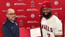 Jordon ‘Jo’ Scott Adell (Uh-DEL)...On Instagram: @adell7...Originally signed by Angels scout John Burden...Founded Jo Adell Foundation, which focuses on Education and Workforce, Sports and Leadership, and Health and Wellness. Has hosted annual ‘Jo Adell Turkey Drive’ providing Thanksgiving dinners to those in need and ‘Jo Adell Baseball Camp’ for youth at his former high school (Ballard HS) in Louisville, Ky....In January 2019, partnered with Reds’ top prospect Hunter Greene for Inaugural Baseball and Leadership Camp in Inglewood, Calif.. Over 400 current/former professional baseball players, campers and coaches gathered for a free day of baseball, leadership and development for local youths...In first off-season as a professional in 2017, took ‘Intro to Communications’ at the University of Louisville...As high school senior in 2017, batted .562 with 25 home runs, 61 RBI, 22 stolen bases and 53 runs...25 HR led nation and fell four shy of the all-time Kentucky High School record (was highest single-season total in state since introduction of BBCOR bats in 2012)...Ranked fourth in nation in slugging percentage (1.437) and seventh in RBI...Named Gatorade Kentucky Baseball Player of the Year...Ranked #14 prospect in nation for 2017 Amateur Draft by MLB.com, which also listed him under best tools of any outfielder/RHP in country...Became first player drafted directly out of a Louisville high school in first round since 2001...Had verbally committed to University of Louisville...Named a two-time Under Armour All-American...Fastball clocked in mid-90s range as a prep...Father, Scott, was an offensive lineman drafted in 12th round by New Orleans Saints in 1992...Mother, Nicole, is principal at Newburg Junior High School (Louisville, KY) where Jo has spoken to students on multiple occasions...Sister, Jessica, played softball at the University of Louisville and University of Tennessee (freshman year).