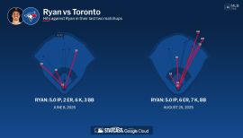 Was Twins' number two starter to open the season, making first start on March 29 at St. Louis, allowing one run on five hits in 5.0 innings pitched, with no walks and five strikeouts...Did not factor into decision in Twins' 5-1 defeat...Struck out season-high 11 batters on April 27 vs. Los Angeles-AL (7.0 shutout innings), marking 10th time in career with double-digit strikeout totals...Induced career-high 26 whiffs during start, tied for seventh-most in baseball in 2025 for single start...Made first career relief appearance on May 19 vs. Cleveland...Began a rain-suspended 3.0-inning game from the previous day that was started by Bailey Ober...Ryan allowed three runs on three hits in five innings pitched as the Twins won, 6-5, in walk-off fashion...Tied career high by winning sixth straight decision, a streak that went from April 27-June 8...Recorded 600th career strikeout on June 2 at the Athletics, fanning Denzel Clarke...Made 100th career major league appearance in a start on June 25 vs. Seattle, pitching six shutout innings and earning the win...Made 100th career Major League start in next appearance on July 1 at Miami, allowing one run on five hits in 7.0 innings pitched, but was dealt the loss in a Twins 2-0 defeat...Named American League All-Star, the first of career, replacing Houston's Hunter Brown...At the break, was 9-4, 2.72 ERA (109.1 IP, 33 ER) with 23 walks, 121 strikeouts and a .196 opponents' batting average in 18 starts...Ranked fifth in the AL in opponents' average, sixth in strikeouts, tied for sixth in wins and eighth in ERA...Tied season-high with 11 strikeouts on July 20 at Colorado (7.0 IP), marking 11th time in career with double-digit strikeout totals...Posted a nine-start stretch from June 25-Aug. 19 in which he allowed two runs or fewer eight times (2.18 ERA in that span)...Recorded 700th career strikeout on Sept. 6 at Kansas City, fanning Adam Frazier...In his 112th career game, marked the fastest to 700 in club history...Led Twins pitching staff in innings pitched (171.0), starts (30) and strikeouts (194)...Finished with 10.21 strikeouts-per-9.0 innings pitched ratio, fourth-highest in Twins history, trailing Pablo López (10.86 - 2023), Kenta Maeda (10.80 - 2020) and Johan Santana (10.46 - 2004)...Set career highs in games (31), starts (30), innings pitched (171.0) and strikeouts (194)...Ranked fourth in the AL in strikeout percentage (28.2%), fifth in walk percentage (5.7%), sixth in strikeouts (194) and WHIP (1.04), tied for sixth in wins (13), ninth in opponents' batting average (.218), 10th in ERA (3.42), 11th in fWAR (3.1) and fielding independent pitching (3.74)...Ranked in MLB's 93rd percentile in fastball run value (15)...Held opponents to a .204 (69-for-338) batting average on his four-seam fastball, including 109 strikeouts; 12th-best opponent batting average in baseball off four-seam fastball; eighth-highest whiff rate (26.9%)...Also posted a .205 (14-for-73) opponents' batting average on his sweeper and .138 (4-for-29) off his curveball...Nominated for a starting pitcher spot on Major League Baseball's All-MLB Team...Named winner of Joseph W. Haynes Award as Twins Pitcher of the Year, an award voted on by the Twin Cities Chapter of the BBWAA.