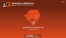 Won his second Cy Young Award with one of the most remarkable seasons in recent history...threw his third-career no-hitter, started the All-Star Game and achieved many career milestones, such as 3,000 career strikeouts and his first-career 300-strikeout season..led the Majors in wins, opponent batting average (.172), WHIP (0.80) and innings pitched (223) and ranked tied for first in quality starts (26) and second in strikeouts...among AL pitchers, ranked second in ERA...set a career high in strikeouts (300) and posted a career-best WHIP (0.80), the third-best WHIP in a single season in the modern era (since 1900), behind Pedro Martinez (0.74 in 2000) and Walter Johnson (0.77 in 1913)...posted a .172 opponent average, which was the seventh-best mark in MLB's modern era (since 1900)...was best mark since Pedro Martinez in 2000 (.167)...won at least 20 games for the second time in his career (also 24 wins in his MVP/Cy Young season in 2011)...at 36 years old, became the American League's oldest 20-game winner since Hall of Famer Mike Mussina won 20 games at 39 years old in 2008...21 wins ranked tied for second in a season in Astros history with Jose Lima (21 in 1999) and Joe Niekro (21 in 1979), behind Mike Hampton (22 in 1999)...threw his third career no-hitter on Sept. 1 at TOR, striking out 14 batters in 9.0 innings pitched...became the sixth pitcher in MLB history with at least three career no-hitters, joining Nolan Ryan (7), Sandy Koufax (4), Bob Feller (3), Cy Young (3) and Larry Corcoran (3)...was the 13th nohitter in Astros history, and the second of the season (also the four-pitcher combined no-hitter on Aug. 3 vs. SEA), making the Astros the 18th club in MLB history with multiple no-hitters in the same season...was the 11th individual no-hitter in Astros history, and the first since RHP Mike Fiers no-hit the Dodgers on Aug. 21, 2015 vs. LAD...was Verlander's second no-hitter at Rogers Centre (also May 7, 2011)...became the first pitcher in MLB history with multiple no-hitters at a single road venue...became the third pitcher all-time with multiple nohitters against a single team, joining Addie Joss vs. CWS (1908, 1910) and Tim Lincecum vs. SD (2013-14)... became the eighth pitcher in MLB history to throw a no-hitter with multiple teams, joining Mike Fiers, Randy Johnson, Hideo Nomo, Jim Bunning, Nolan Ryan, Theodore Breitenstein and Cy Young...at 36 years, 193 days old, became the 12th-oldest pitcher in MLB history to toss a no-hitter, and the oldest since Randy Johnson nohit the Braves at 40 years old in 2004...became the 18th pitcher in Major League history to record 3,000 career strikeouts when he reached that total in his final start of the season on Sept. 28 at LAA...his 3,000th strikeout was his sixth on the night, a swinging strikeout of Angels RF Kole Calhoun, who reached first on what was ruled a wild pitch...recorded 12 strikeouts on the night, which was the exact number he needed to reach 300 strikeouts for the season for the first time in his career... became the second pitcher in MLB history to reach 300 strikeouts for a season and 3,000 strikeouts for a career within the same game, joining LHP Randy Johnson, who did so on Sept. 10, 2000 at FLA, while pitching for the Diamondbacks...became the fifth pitcher with 3,000 strikeouts to pitch for the Houston franchise, joining RHP Nolan Ryan (5,714), LHP Randy Johnson (4,875), RHP Roger Clemens (4,672) and RHP Curt Schilling (3,116)...reached strikeout number 3,000 on inning number 2,979.2, and in his 453rd game...per Elias Sports, became the fourth-quickest to 3,000 strikeouts by innings and the fifth-quickest in terms of games...climbed MLB's all-time strikeout leaderboard, surpassing Frank Tanana (2,773), Cy Young (2,806), Mike Mussina (2,813), Mickey Lolich (2,832) and Jim Bunning (2,855)...moved into 18th all-time with 3,006 strikeouts...was named to the 2019 AL All-Star Team via the player vote, his eighth-career All-Star nomination (2007, 2009-13, 2018-19)...received 267 player votes, the most among all MLB pitchers...became the 22nd pitcher in MLB history to be named to eight All-Star Teams (19 of those pitchers are Hall of Famers)...became the 33rd pitcher in MLB history to make multiple All-Star Game starts, and the 12th to do so for different teams, joining Hall of Famers Randy Johnson, Jack Morris, Steve Carlton and Roy Halladay, and Chris Sale, Roger Clemens, Vida Blue, David Wells, Curt Schilling, Dean Chance and Max Scherzer...went 13-2 against AL West opponents, posting a 2.91 ERA (38ER/117.2IP) with 158 strikeouts in 19 starts...the 13 wins marked the most by any pitcher against the AL West since divisional realignment in 1994...recorded 16 starts whre he allowed one earned run-or-fewer, which was tied for seventh-most starts in the Majors...started for the Astros on Opening Day on March 28 at TB...marked his 11th career Opening Day start and his second consecutive for the Astros...became the 14th pitcher in MLB history to record 11 Opening Day starts...earned the win with his 7.0 innings of one-run ball...struck out nine...marked his 7th consecutive Opening Day victory...became the 7th pitcher all-time to lead his club to eight total wins on Opening Day in his career...his nine strikeouts tied Mike Scott (1988) for the second-most on an Opening Day in Astros history...over a four-start stretch from April 13-29, posted a 1.33 ERA (4ER/27) with 37 strikeouts...allowed just one earned run in each start, all via solo home runs...became just the second pitcher in MLB history to allow one run in four straight starts, all via solo homers, joining Greg Harris in 1991...struck out six batters in 7.0 innings on May 26 vs. BOS, pushing him past the 2,800 strikeout mark for his career...became the 22nd pitcher all-time to do so...struck out a career-high 15 batters while issuing no walks over 7.0 innings on June 12 vs. MIL...became the second pitcher in Astros history to post 15+ strikeouts and no walks in a game, jo