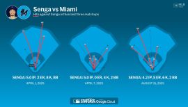 Missed nearly the first four months of the season with a right shoulder capsule strain...Made one start on July 26 against Atlanta, throwing 5.1 innings and allowing two runs on two hits with nine strikeouts and one walk before exiting with an injury...Missed the rest of the regular season with a strained left calf...The right-hander made five rehab starts, one with High-A Brooklyn and four with Triple-A Syracuse...In his five rehab starts, Senga allowed six runs over 14.0 innings and recorded 15 strikeouts...Made his first career Postseason start, after making just one start in the regular season, on Oct. 5 in Game 1 of the NLDS against the Phillies...He threw 2.0 innings allowing one run, a home run in the first inning, and recorded one walk and three strikeouts...In total, he appeared in three games in 2024 Postseason starting Game 1 of the NL Division Series against Philadelphia, Game 1 of the NL Championship Series and appeared out of the bullpen in Game 6 of the NL Championship Series against Los Angeles-NL.