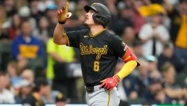 Entered the season rated by Baseball America as the No. 57 prospect in all of baseball...Appeared in eight spring games as a non-roster invitee...Began his first professional season with Bradenton...Hit his first home run on 4/11 vs. Palm Beach...Recorded an RBI in four straight games from 4/10-15 (seven RBI total)...Homered and had three RBI in back-to-back games from 4/25-26 at Lakeland...Hit safely in nine straight games from 5/7-17, going 21-for-40 (.525) with three doubles, two home runs, nine RBI, six stolen bases, 14 runs scored and a 1.285 OPS during the streak (had at least three hits in five of the nine games)...Had at least one RBI in five straight games from 5/13-17 (seven RBI total)...Hit safely in each of his final five games with the Marauders from 6/3-7, going 13-for-23 (.565) with a double, a home run, seven RBI, eight runs and a 1.339 OPS...Led the Florida State League in batting, hits, total bases (111) and runs during his time with Bradenton...Was promoted to Greensboro on 6/10 and made his Grasshoppers debut that night at Rome...Was named the South Atlantic League’s Player of the Week for the week of 6/9-15 after going 11-for-27 (.407) with four doubles, two home runs, eight RBI, three walks, 10 runs scored and a 1.247 OPS in the six-game series at Rome (homered in back-to-back games from 6/14-15)...Hit safely in each of his first nine games with Greensboro from 6/10-19, going 16-for-41 (.390) with five doubles, two home runs, nine RBI, four walks, seven stolen bases, 10 runs and a 1.106 OPS during the streak...Was the starting shortstop for the National League in the All-Star Futures Game on 7/12 at Atlanta’s Truist Park, going 1-for-2 (exited in the fourth inning)...Posted a 10-game hitting streak from 8/2-12, going 14-for-41 (.341) with a double, three home runs, 12 RBI, seven walks, nine stolen bases, 11 runs and a 1.036 OPS during the streak...Recorded at least one RBI in five straight games from 8/5-9 (11 RBI total)...Homered in back-to-back games from 8/7-8 at Asheville...Had an RBI in each of his final four games with the Grasshoppers from 8/14- 17 vs. Greenville...Led the South Atlantic League in batting, hits, stolen bases, runs, OBP, slugging, OPS and total bases (99) during his time with Greensboro...Was promoted to Altoona on 8/19 and debuted that night vs. Reading...Hit his first Double-A home run on 8/29 at Harrisburg, going 3-for-5 with two home runs and seven RBI...Hit safely in nine straight games from 8/23-9/3, going 12-for-34 (.353) with two doubles, three home runs, 14 RBI, four walks, five stolen bases, 11 runs and a 1.141 OPS during the streak...Ended the regular season on a seven-game hitting streak (9/6-14), during which he went 12-for-32 (.375) with two home runs, five RBI, seven runs and a .975 OPS...Was tied for the Eastern League lead in RBI and runs during his time with Altoona... Also went 6-for-10 (.600) with a double, two RBI and three walks during the Curve’s postseason series against Erie (lost in three games)...Finished the season rated by both MLB Pipeline and Baseball America as the No. 1 prospect in all of baseball...Was named Baseball America’s Minor League Player of the Year, joining Mike Bielecki in 1984 as the only Pirates farmhands to ever win the award (established in 1981)...Joined Joe Mauer, Byron Buxton, Bobby Witt Jr. and Jackson Holliday as the only players to ever be recognized as both Baseball America’s High School Player of the Year and Minor League Player of the Year...Hit a combined .333 (161-for-484) with 23 doubles, four triples, 21 home runs, 94 RBI, 50 walks, 65 stolen bases, 117 runs and a .942 OPS in 122 regular-season games split between Bradenton, Greensboro and Altoona in his first pro season...His 65 stolen bases were the most by a Pirates farmhand since Pedro Powell (67) in 2007, while his 117 runs were the most by a Pirates farmhand since Robbie Grossman (127) in 2011...Ranked second among all players in Minor League Baseball in runs scored, fifth in hits and total bases (255), tied for seventh in RBI and tied for eighth in stolen bases (ranked fourth among all full-season players in batting and seventh in OPS)...Became the first minor league player to hit above .330 with at least 20 home runs and 60 stolen bases in a single season since Oakland’s Tom Romano batted .340 with 26 home runs and 66 stolen bases during the 1982 campaign...Posted the highest batting average by a teenager in full-season Minor League Baseball since Toronto’s Vladimir Guerrero Jr. hit .381 as a 19-year-old in 2018...Was the fifth teenager in Minor League Baseball to have at least 20 home runs and 40 stolen bases in a season, joining Andruw Jones (1995), Alex Escobar (1998), Ronald Acuña Jr. (2017) and Jackson Chourio (2023)...Was recognized as the organization’s Bill Mazeroski Defender of the Year and Honus Wagner Player of the Year during Young Bucs Awards Week...Was the first Pittsburgh farmhand to win an Minor League Gold Glove Award (shortstop) since Jared Triolo did in 2021...Was honored as a Baseball America Minor League All-Star (Overall, High-A and Low-A), as well as the USA Today Minor League Player of the Year...Was also named to the MiLB Awards All-MiLB Prospect First Team... Was recognized as the MiLB Awards Hitting Prospect of the Year, while also having the MiLB Awards Debut of the Year.