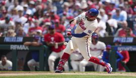 Became the first Phillie in team history with 30+ HR in each of his first three seasons with the club...Was the first Phillie to lead the NL in walks (106) in a full season since Rhys Hoskins (116) in 2019...Ranked third in the NL in HR (38), runs (110) and AB/HR (15.08), tied for fourth in RBI (104), tied for fifth in SF (eight), seventh in OPS (.851) and ninth in OBP (.366) and SLG (.485)...Hit 38 HR when batting in the leadoff spot, tops in MLB and tied with himself (2022) for most in a single season in franchise history...Also ranked first among all ML leadoff hitters in RBI, walks and runs, sixth in hits (142), eighth in OPS and 10th in OBP and SLG...Set a ML record with 15 leadoff HR; with Alfonso Soriano (prev. record: 13 in 2003), they are the only two players in ML history with multiple seasons of 10+ leadoff HR...Was one of three players in MLB with 100 R/100 RBI/100 BB in 2024; also: Juan Soto and Aaron Judge...Is the third Phillie since 1920 with 100 R/100 RBI/100 BB in consecutive seasons, joining Bobby Abreu (2004-05) and Mike Schmidt (1976-77); last in MLB: Bautista (2014-15)...Has scored at least 100 runs in each of the last three seasons, the first Phillie to do so since Chase Utley from 2006-09; is the fourth Phillie to accomplish the feat in their first three-plus seasons with the club, joining Roy Thomas (1899-1901), Sam Thompson (1889-96) and Billy Hamilton (1890-95)...Was the first Phillies batter with at least 100 RBI in back-to-back seasons since Ryan Howard (six straight) from 2006-11, and the first with at least 100 walks in consecutive seasons since Pat Burrell from 2007-08...Set a new single-season career high in hits (142), surpassing 132 in 2019 with CHI, and notched his 900th ML hit on Sept. 21 at NYM...On April 13 vs. PIT, became the first Phillies LHH to reach base five times in a game, all against LHP, since Richie Ashburn on July 26, 1958 vs. LAD off Sandy Koufax...Hit his 250th career HR on April 17 vs. COL (998 games) and joined Giancarlo Stanton (270 HR, 1000 games) and Aaron Judge (315 HR, 993 games) as the only active players with 250 HR in their first 1,000 games...Hit his 100th HR as a Phillie in his 342nd game on April 26 at SD, becoming the second-fastest player in franchise history to 100 HR (Ryan Howard, 325 games)...Became the fastest player to 60 HR in June (172 games) in MLB history; only player to reach 60 HR faster in any month was Juan González (August, 167 games)...On the 10-day IL from June 28-July 7 with a left groin strain...His 14 total bases on Aug. 7 at LAD and 15 total bases on Sept. 3 at TOR were the most in a non-extra-inning game and the fourth- and third-most by a Phillie in any game behind Mike Schmidt (17 on April 17, 1976) and Chuck Klein (16 on July 10, 1936); is the only player in the modern era to have multiple games of 14+ total bases in a single season...Hit three HR and a career-high-tying seven RBI on Aug. 7 at LAD (also: July 28, 2019 vs. MIL with CHI), the first Phillie with such marks in a game since Jayson Werth on May 16, 2008...Registered the first double-digit hitting streak of his career (10 games, Sept. 1-13), slashing .410/.467/1.026 with seven HR and a 1.492 OPS...Hit a leadoff HR in back-to-back games from Sept. 3-4 for the second time (also: Sept. 1-2, 2023) and the fifth instance in Phils history...His five hits on Sept. 3 at TOR were a career high and he joined Mike Schmidt (April 17, 1976) as the only players in franchise history with five hits and three HR in a game...On the same day, became the first player in Phillies franchise history to start a game with a leadoff home run and then hit a game-winning home run in the ninth inning or later...Named NL Player of the Week on Sept. 9 for the second time in his career; slashed .462/.500/1.154 with five HR, 11 RBI, 1.654 OPS in six games...Was the Phillies’ Roberto Clemente Award nominee for the second straight year, presented annually to a player who best represents the game of baseball on and off the field...Named the club’s ML Community Service Award recipient, the highest community honor in the Phillies organization recognizing one player for his character and community involvement...Hit his fifth career postseason leadoff HR and fourth as a Phillie in Game 1 of the NLDS vs. NYM on Oct. 5 (Kodai Senga), the most postseason leadoff HR in MLB history.