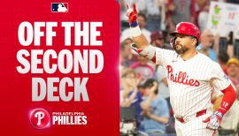 Became the first Phillie in team history with 30+ HR in each of his first three seasons with the club...Was the first Phillie to lead the NL in walks (106) in a full season since Rhys Hoskins (116) in 2019...Ranked third in the NL in HR (38), runs (110) and AB/HR (15.08), tied for fourth in RBI (104), tied for fifth in SF (eight), seventh in OPS (.851) and ninth in OBP (.366) and SLG (.485)...Hit 38 HR when batting in the leadoff spot, tops in MLB and tied with himself (2022) for most in a single season in franchise history...Also ranked first among all ML leadoff hitters in RBI, walks and runs, sixth in hits (142), eighth in OPS and 10th in OBP and SLG...Set a ML record with 15 leadoff HR; with Alfonso Soriano (prev. record: 13 in 2003), they are the only two players in ML history with multiple seasons of 10+ leadoff HR...Was one of three players in MLB with 100 R/100 RBI/100 BB in 2024; also: Juan Soto and Aaron Judge...Is the third Phillie since 1920 with 100 R/100 RBI/100 BB in consecutive seasons, joining Bobby Abreu (2004-05) and Mike Schmidt (1976-77); last in MLB: Bautista (2014-15)...Has scored at least 100 runs in each of the last three seasons, the first Phillie to do so since Chase Utley from 2006-09; is the fourth Phillie to accomplish the feat in their first three-plus seasons with the club, joining Roy Thomas (1899-1901), Sam Thompson (1889-96) and Billy Hamilton (1890-95)...Was the first Phillies batter with at least 100 RBI in back-to-back seasons since Ryan Howard (six straight) from 2006-11, and the first with at least 100 walks in consecutive seasons since Pat Burrell from 2007-08...Set a new single-season career high in hits (142), surpassing 132 in 2019 with CHI, and notched his 900th ML hit on Sept. 21 at NYM...On April 13 vs. PIT, became the first Phillies LHH to reach base five times in a game, all against LHP, since Richie Ashburn on July 26, 1958 vs. LAD off Sandy Koufax...Hit his 250th career HR on April 17 vs. COL (998 games) and joined Giancarlo Stanton (270 HR, 1000 games) and Aaron Judge (315 HR, 993 games) as the only active players with 250 HR in their first 1,000 games...Hit his 100th HR as a Phillie in his 342nd game on April 26 at SD, becoming the second-fastest player in franchise history to 100 HR (Ryan Howard, 325 games)...Became the fastest player to 60 HR in June (172 games) in MLB history; only player to reach 60 HR faster in any month was Juan González (August, 167 games)...On the 10-day IL from June 28-July 7 with a left groin strain...His 14 total bases on Aug. 7 at LAD and 15 total bases on Sept. 3 at TOR were the most in a non-extra-inning game and the fourth- and third-most by a Phillie in any game behind Mike Schmidt (17 on April 17, 1976) and Chuck Klein (16 on July 10, 1936); is the only player in the modern era to have multiple games of 14+ total bases in a single season...Hit three HR and a career-high-tying seven RBI on Aug. 7 at LAD (also: July 28, 2019 vs. MIL with CHI), the first Phillie with such marks in a game since Jayson Werth on May 16, 2008...Registered the first double-digit hitting streak of his career (10 games, Sept. 1-13), slashing .410/.467/1.026 with seven HR and a 1.492 OPS...Hit a leadoff HR in back-to-back games from Sept. 3-4 for the second time (also: Sept. 1-2, 2023) and the fifth instance in Phils history...His five hits on Sept. 3 at TOR were a career high and he joined Mike Schmidt (April 17, 1976) as the only players in franchise history with five hits and three HR in a game...On the same day, became the first player in Phillies franchise history to start a game with a leadoff home run and then hit a game-winning home run in the ninth inning or later...Named NL Player of the Week on Sept. 9 for the second time in his career; slashed .462/.500/1.154 with five HR, 11 RBI, 1.654 OPS in six games...Was the Phillies’ Roberto Clemente Award nominee for the second straight year, presented annually to a player who best represents the game of baseball on and off the field...Named the club’s ML Community Service Award recipient, the highest community honor in the Phillies organization recognizing one player for his character and community involvement...Hit his fifth career postseason leadoff HR and fourth as a Phillie in Game 1 of the NLDS vs. NYM on Oct. 5 (Kodai Senga), the most postseason leadoff HR in MLB history.