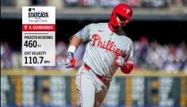 Became the first Phillie in team history with 30+ HR in each of his first three seasons with the club...Was the first Phillie to lead the NL in walks (106) in a full season since Rhys Hoskins (116) in 2019...Ranked third in the NL in HR (38), runs (110) and AB/HR (15.08), tied for fourth in RBI (104), tied for fifth in SF (eight), seventh in OPS (.851) and ninth in OBP (.366) and SLG (.485)...Hit 38 HR when batting in the leadoff spot, tops in MLB and tied with himself (2022) for most in a single season in franchise history...Also ranked first among all ML leadoff hitters in RBI, walks and runs, sixth in hits (142), eighth in OPS and 10th in OBP and SLG...Set a ML record with 15 leadoff HR; with Alfonso Soriano (prev. record: 13 in 2003), they are the only two players in ML history with multiple seasons of 10+ leadoff HR...Was one of three players in MLB with 100 R/100 RBI/100 BB in 2024; also: Juan Soto and Aaron Judge...Is the third Phillie since 1920 with 100 R/100 RBI/100 BB in consecutive seasons, joining Bobby Abreu (2004-05) and Mike Schmidt (1976-77); last in MLB: Bautista (2014-15)...Has scored at least 100 runs in each of the last three seasons, the first Phillie to do so since Chase Utley from 2006-09; is the fourth Phillie to accomplish the feat in their first three-plus seasons with the club, joining Roy Thomas (1899-1901), Sam Thompson (1889-96) and Billy Hamilton (1890-95)...Was the first Phillies batter with at least 100 RBI in back-to-back seasons since Ryan Howard (six straight) from 2006-11, and the first with at least 100 walks in consecutive seasons since Pat Burrell from 2007-08...Set a new single-season career high in hits (142), surpassing 132 in 2019 with CHI, and notched his 900th ML hit on Sept. 21 at NYM...On April 13 vs. PIT, became the first Phillies LHH to reach base five times in a game, all against LHP, since Richie Ashburn on July 26, 1958 vs. LAD off Sandy Koufax...Hit his 250th career HR on April 17 vs. COL (998 games) and joined Giancarlo Stanton (270 HR, 1000 games) and Aaron Judge (315 HR, 993 games) as the only active players with 250 HR in their first 1,000 games...Hit his 100th HR as a Phillie in his 342nd game on April 26 at SD, becoming the second-fastest player in franchise history to 100 HR (Ryan Howard, 325 games)...Became the fastest player to 60 HR in June (172 games) in MLB history; only player to reach 60 HR faster in any month was Juan González (August, 167 games)...On the 10-day IL from June 28-July 7 with a left groin strain...His 14 total bases on Aug. 7 at LAD and 15 total bases on Sept. 3 at TOR were the most in a non-extra-inning game and the fourth- and third-most by a Phillie in any game behind Mike Schmidt (17 on April 17, 1976) and Chuck Klein (16 on July 10, 1936); is the only player in the modern era to have multiple games of 14+ total bases in a single season...Hit three HR and a career-high-tying seven RBI on Aug. 7 at LAD (also: July 28, 2019 vs. MIL with CHI), the first Phillie with such marks in a game since Jayson Werth on May 16, 2008...Registered the first double-digit hitting streak of his career (10 games, Sept. 1-13), slashing .410/.467/1.026 with seven HR and a 1.492 OPS...Hit a leadoff HR in back-to-back games from Sept. 3-4 for the second time (also: Sept. 1-2, 2023) and the fifth instance in Phils history...His five hits on Sept. 3 at TOR were a career high and he joined Mike Schmidt (April 17, 1976) as the only players in franchise history with five hits and three HR in a game...On the same day, became the first player in Phillies franchise history to start a game with a leadoff home run and then hit a game-winning home run in the ninth inning or later...Named NL Player of the Week on Sept. 9 for the second time in his career; slashed .462/.500/1.154 with five HR, 11 RBI, 1.654 OPS in six games...Was the Phillies’ Roberto Clemente Award nominee for the second straight year, presented annually to a player who best represents the game of baseball on and off the field...Named the club’s ML Community Service Award recipient, the highest community honor in the Phillies organization recognizing one player for his character and community involvement...Hit his fifth career postseason leadoff HR and fourth as a Phillie in Game 1 of the NLDS vs. NYM on Oct. 5 (Kodai Senga), the most postseason leadoff HR in MLB history.