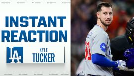 Kyle is in his first season with the Cubs after he was acquired from Houston Dec. 13, 2024 for infielder Isaac Paredes, righthanded pitcher Hayden Wesneski and Minor League infielder Cam Smith...Spent parts of seven Major League seasons with the Astros (2018-24), batting .274 (615-for-2,241) with 135 doubles, 16 triples, 125 home runs, 417 RBI, 94 stolen bases, a .353 on-base percentage and an .870 OPS in 633 career games...Has played in 64 career Postseason games, tallying eight home runs and 28 RBI...Won his first career World Series championship with the Astros in 2022...Is a three-time All-Star (2022-24) and won the 2023 Silver Slugger and 2022 Gold Glove Award in right field...From 2022-24, hit 112 home runs and recorded 80 stolen bases, one of three Major Leaguers to reach those marks during the span, joining Shohei Ohtani (178 HR, 116 SB) and José Ramírez (128 HR, 116 SB)…Finished fifth in the A.L. MVP Award voting in 2023, leading the A.L. in RBI (112)…Hit .284 (163-for-574) with 37 doubles, five triples, 29 home runs, 112 RBI and an .886 OPS...Became the third player in Astros' history to lead their league in RBI, joining Lance Berkman (128 in 2002) and Jeff Bagwell (116 in 1994)...In 2022, was the lone player in the Major Leagues to record at least 30 home runs and 25 stolen bases...Joined Jeff Bagwell (1997, 1999) as the only two Astros players to reach those marks in a single season...Enjoyed a breakout campaign in 2020, leading the Majors in triples (6), while pacing the Astros in hits (56), RBI (42), stolen bases (8), total bases (107) and extra-base hits (27)…Made his Major League debut on July 7, 2018 vs. Chicago (A.L.), going 1-for-4 with an RBI...Recorded 34 home runs and 30 stolen bases in 125 games for Triple-A Round Rock in 2019, becoming the fifth player in the history of the Pacific Coast League to have a 30-homer, 30-stolen base season...Was the Astros Minor League Player of the Year twice (2017-18)…In 2018, was named the Baseball America Triple-A Player of the Year, leading all Triple-A players in OPS (.989), while posting a 20-homer, 20-stolen base season...Started in right field, going 1-for-3 with an RBI at the SiriusXM All-Star Futures Game in 2017...Was named to the Arizona Fall League Rising Stars team following the 2017 campaign...Was named an MiLB.com Organizational All-Star three times (2016-18)…Was selected by Houston in the first round (fifth overall) in the 2015 draft...Was committed to the University of Florida prior to signing with Houston...Graduated from H.B. Plant High School in Tampa, Fla., in 2015...Batted .484 with a .581 OBP as a senior, receiving Florida Gatorade Player of the Year honors, an award also won by Derek Jeter, Chipper Jones, Roy Halladay and Lance McCullers Jr...His 31 career high school homers broke his older brother Preston's school record (29)...Was high school teammates with Pete Alonso...Hall of Famer Wade Boggs also attended Plant High School...His brother, Preston, played in parts of three Major League seasons with Houston (2015-16), Atlanta (2018) and Cincinnati (2018)…Was the Astros nominee for the Roberto Clemente Award in 2024, an award which goes to a Major League player who best represents the game of baseball through extraordinary character, community involvement, philanthropy and positive contributions, both on and off the field...Started the Kyle Tucker Foundation, dedicated to Hospice Care after the passing of his grandfather, Dwayne, in October 2021.
