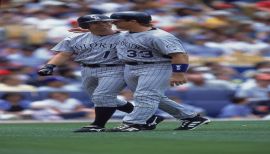 Walker's 31 home runs, 14 HBP, 72 extra-base hits, .607 slugging pct. and 300 total bases were second in the NL and he finished seventh in the MVP balloting ...in his April 26 Rockies debut, and Coors Field's inaugural game, he had three doubles, including one with two out in the ninth that sent the game into extra innings, an 11-9 win over New York...he homered in four consecutive May games ...Walker hit his 100th career homer, May 7 vs. Los Angeles off Hideo Nomo...Larry hit a game-tying three-run homer off Tom Glavine in Game 2 of the Division Series vs. Atlanta.