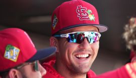 NL Ranks: OBP (.367, 11th), Walks (72, T-17th), Walk Pct. (14.3, T-7th), PA/BB (6.99, 8th), BB/K (0.73, 6th), Groundball/ Flyball ratio (1.82, 9th), Groundball pct. (50.0, 8th), Pct. of pitches taken (64.4, 1st*), Pct. swings put in play (44.9, 7th), Pct. swings on first pitch (14.3, 2nd)...Established single-season highs in games (117), hits (111), extra-base hits (38), walks (72), doubles (23), RBI (46), runs scored (74), stolen bases (11) and total bases (178), and matched his home run total (14) from 2022...Led MLB in highest percentage of pitches taken (64.4%) and ranked third in lowest Chase Rate (17.1%), his percentage of pitches swung at outside of the strike zone...Missed a total of 42 games on three separate stints on the Injured List due to left thumb (April 3-14), lower back (May 30-June 18), and lower abdomen (Aug. 18-31) injuries...Worked at least one walk in 51 games, compiled multiple walks in 15 games (T-10th in NL), and 3+ walks in six games (T-2nd in NL)...Walked three times in consecutive games (April 15-16), tying the franchise record (19th time)...Hit .357 (75-210) off fastballs, 2nd-best in MLB to Shohei Ohtani (.374, 82-219) - minimum 200 plate appearances...Averaged 410 feet on his 14 home runs, 2nd-longest on the Cardinals to Nolan Gorman (411)...Reached base safely in 93 of 117 games, including 4+ times in a game on 10 occasions (T-6th in NL)...Hit 40.8% of balls in play to center field, third-highest in MLB to Brent Rooker (41.0%) and Yandy Diaz (41.1%)...Batted .277/.362/.454 (75-271) with an .816 OPS in 68 games from the leadoff spot. Led the Cardinals with 17 leadoff hits in the first inning...Appeared in 114 games defensively, playing in center field (73 g) right field (34 g), and left field (24 g)...Smacked four leadoff home runs (T-12th in MLB)...Tied an MLB record with eight walks in his first three games of the season (Detroit's Robbie Grossman, 2021) while surpassing the Cardinals record of Wally Moon (7 in 1958) & Miller Huggins (1913)...Compiled multiple hits in three consecutive games twice: May 4-6 and Aug. 9-11...Ranked among MLB leaders in July in runs (24, T-1st), games, (26, T-2nd) and walks (18, T-5th). His 24 runs scored were most by a Cardinal since Jim Edmonds (27 in 2004)...Recorded a .980 OPS in July, reaching base safely in 24-of-26 games, including a career-best 17 in a row from July 1-20 (.269/.364/.418)...Missed the cycle by a triple on July 22 at the Chicago Cubs. Hit the 10th leadoff HR by a Cardinal at Wrigley Field on the first pitch of the game...Went yard twice in a 3-2 loss to the Cubs on July 28 at Busch Stadium. Became the first Cardinal to record a multi-homer effort that included a leadoff blast since Matt Carpenter (3 HR) on July 20, 2018 at Chicago Cubs...Became the second Cardinals leadoff hitter in team history to hit 2 HR and drive in all of the team’s runs, joining Dexter Fowler on April 19, 2017 vs. Pittsburgh in a 2-1 win.