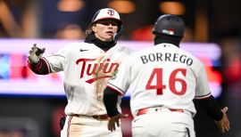 Ranked as 61st-best prospect in baseball by MLB.com entering 2025...ranked third-best prospect in Twins system by MLB.com and Baseball America entering 2025..Was invite to Twins spring training and reassigned to Minor League camp on Mach 16...Began season with Triple-A St. Paul and played in 14 games, from March 28-April 16...Named Twins minor league Player of the Week on April 6, hitting .417 (5-for-12) with one doubles, one RBI, two walks and a .533 on-base percentage for Saints...Contract selected by Minnesota on April 18...Made first career start and major league debut on April 18 at Atlanta at designated hitter and went 2-for-4 with one RBI...singled in the second inning for first career hit off Bryce Elder, driving in Ryan Jeffers...also stole first base in that same game...he became the fourth Twin in club history (since 1961) to record a hit, an RBI and a stolen base in his debut, joining Jake Cave (5/19/18), Matt Macri (5/24/08) and César Tovar (4/12/65)...additionally, he became the first player in Twins/Senators franchise history (since 1901) with two hits, an extra-base hit, an RBI, a stolen base and a run scored in his debut...Stole two bases in consecutive games on April 22-23 vs. Chicago-AL...at the time had five steals (all successful) in first five games... that mark tied for most by a player in his first five games in AL/NL history, matching Luis Castillo (1996), Ced Landrum (1991), Donell Nixon (1987) and Vince Coleman (1985)...Hit safely in each of first six Major League games, from April 18-24...Hit by pitch in right wrist/forearm on April 25 vs. Los Angeles-AL, by Kyle Hendricks...left game after the one plate appearance...Placed on 15-day Injured List on April 26 with a right forearm fracture; transferred to 60-day IL on May 18 (Carson McCusker contract selected)...played in 14 games on rehab assignment with Triple-A St. Paul from July 18-Aug. 3 and was reinstated on Aug. 5...Hit safely in each of first five games in return from IL, hitting .455 (10-for-22) with 10 RBI and a 1.318 OPS in those games...Recorded first career walk-off hit on Aug. 10 vs. Kansas City, a two-run home run in the bottom of the 11th inning off Carlos Estévez... also his first career three-hit game...Went 0-for-3 on Aug. 11 at New York-AL, snapping his on-base streak at 12 games to begin his career, the second-longest in Twins history (Glenn Williams - 13 in 2005)...additionally, the hitting streak was snapped at 11 games, also second-longest behind Williams’ 13. Named American League Player of the Week on Aug. 11, hitting .455 (10-for-22) with two home runs, 10 RBI three doubles, two runs scored and an .864 slugging percentage and a .455 on-base percentage in five games...Recorded first career four-hit game on Sept. 4 vs. Chicago-AL...Recorded second career-walk off RBI with sacrifice fly on Sept. 12 vs. Arizona...Hit safely in season/career-high eight-straight games twice: Aug. 31-Sept. 8 and Sept. 10-20...Placed on 10-day Injured List on Sept. 25 with left thumb sprain, an injury he sustained sliding into second base on Sept. 23 at Texas, ending his season...Of his 49 games played with Twins on season, he reached base in 44 of those games...finished with a .382 on-base percentage, the third-highest for a rookie in baseball (minimum of 200 plate appearances) and seventh-highest in club history among same parameters...Finished with 14 stolen bases (17 attempts), most for a Twins rookie since Danny Santana stole 20 in 2014...tied for 10th-most in a single-season by a rookie in Twins history...Named second baseman on MLB Pipeline’s 2025 All-Rookie Team...Finished in ninth place for AL Rookie of the Year voting, totaling three voting points, one fourth place vote and one fifth place vote...Named second baseman on Baseball Digest’s 2025 MLB Rookie All-Star team...Named winner of Bill Boni Award as Twins Rookie of the Year, an award voted on by the Twin Cities Chapter of the BBWAA.