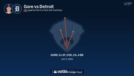 Selected as Washington’s Pitcher of the Year by the local chapter of the BBWAA and was voted to the 2025 All-Star Game via player voting – first career All-Star nod…set career highs in strikeouts (185) and quality starts (14), going 5-15 with a 4.17 ERA (74 ER/159.2 IP), 3.74 FIP and 1.353 WHIP in 30 games/ starts with Washington…the 185 strikeouts were the most by a Nationals pitcher since 2019 (251-Strasburg/243-Scherzer/238- Corbin)…led the staff in strikeouts, while making the second-most starts and tossing the third-most innings…made his first career Opening Day start on 3/27 vs. PHI, tossing 6.0 scoreless innings, allowing one hit, walking none, and striking out a career-high 13 batters…the 13 SO were a MON/WAS franchise record for a season opener as Gore became the just the second pitcher since 1900 to fan 13+ and allow no runs or walks on Opening Day, joining Hall-of-Famer Bob Gibson in 1967…matched his career high with another 13-SO effort on 4/19 at COL…on 5/29 at SEA, fanned Ben Williamson in the third for his 500th career strikeout… at 26 years, 94 days old, Gore became the second-youngest active pitcher at the time with 500+ strikeouts (CIN’s Hunter Greene – 163 days younger)…carried a 2.89 ERA (28 ER/87.1 IP) over his first 15 starts thru 6/15, as his 12 GS of 6.0+ IP in that stretch were tied for the N.L. lead…ranked among N.L. first half leaders in SO rate (second, 30.5%), SO (third, 138), FIP (seventh, 2.99), and ERA (10th, 3.02)…produced a scoreless fifth inning in the Midsummer Classic on 7/15 in Atlanta, needing just nine pitches to retire all three BF in order (J. Caminero, J. Báez, J. Wilson) – all via the groundout…saw worse results after the All-Star break, logging a 6.75 ERA (37 ER/49.1 IP) in 11 starts…issued a career-high-tying six BB on 7/25 at MIN…fanned double-digit batters for a third time on 8/10 at SF, racking up 10 SO in an 8-0 shutout win over the Giants – his lone victory of the second half…had two brief stints on the Injured List: 8/30-9/10 (left shoulder inflammation) and 9/23-end of season (right ankle impingement)…allowed two-or-fewer ER in 19 of his 30 GS, including one-or-zero ER in 10 GS…received just 3.44 runs of support per 9.0, the fifth-lowest mark in MLB (min. 150.0 IP)…was backed with two-or-fewer runs scored in 23 of his 30 starts…when receiving 3+ RS, was 4-1 with a 2.83 ERA in seven GS…was tougher on opposing left-handed batters, holding them to a .235/.294/.383/.677 (38-for-162) clip, while righties hit 259/.337/.409/.746 (114-for-440)…opposing base stealers were just 13-for-22 (59.1%) , the lowest mark for any N.L. left-hander and fourth-lowest among MLB lefties (min. 150.0 IP).