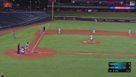 Marco Dinges out on a sacrifice fly to right fielder Brailer Guerrero. Blake Mitchell scores. Luke Adams to 3rd.